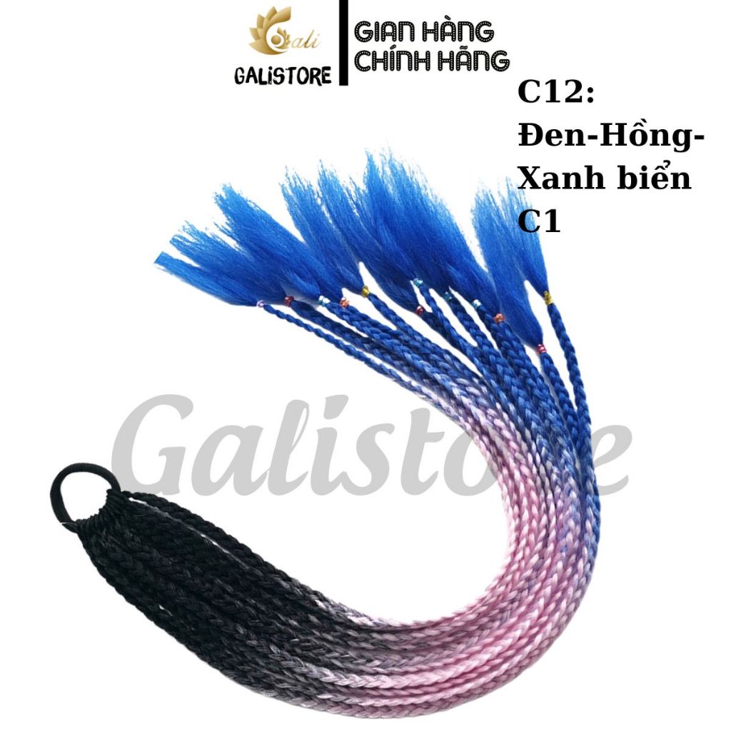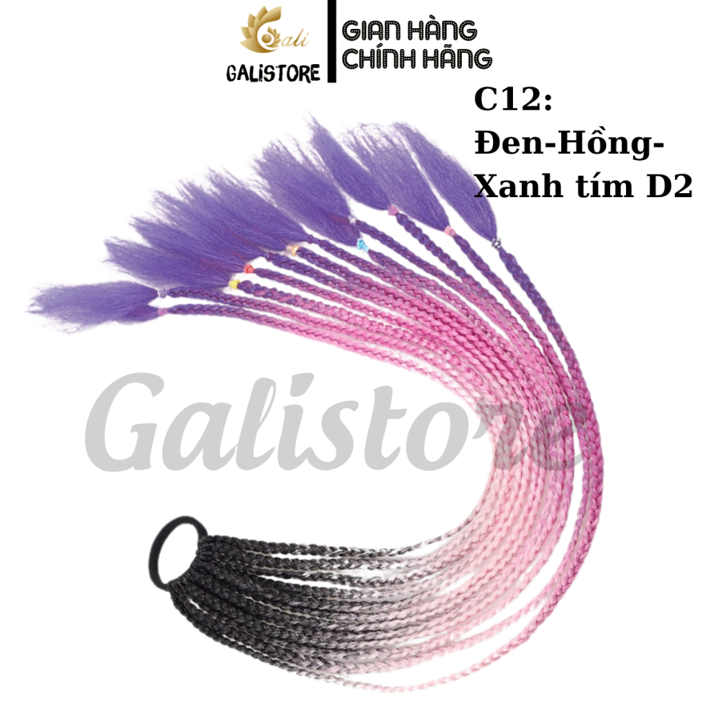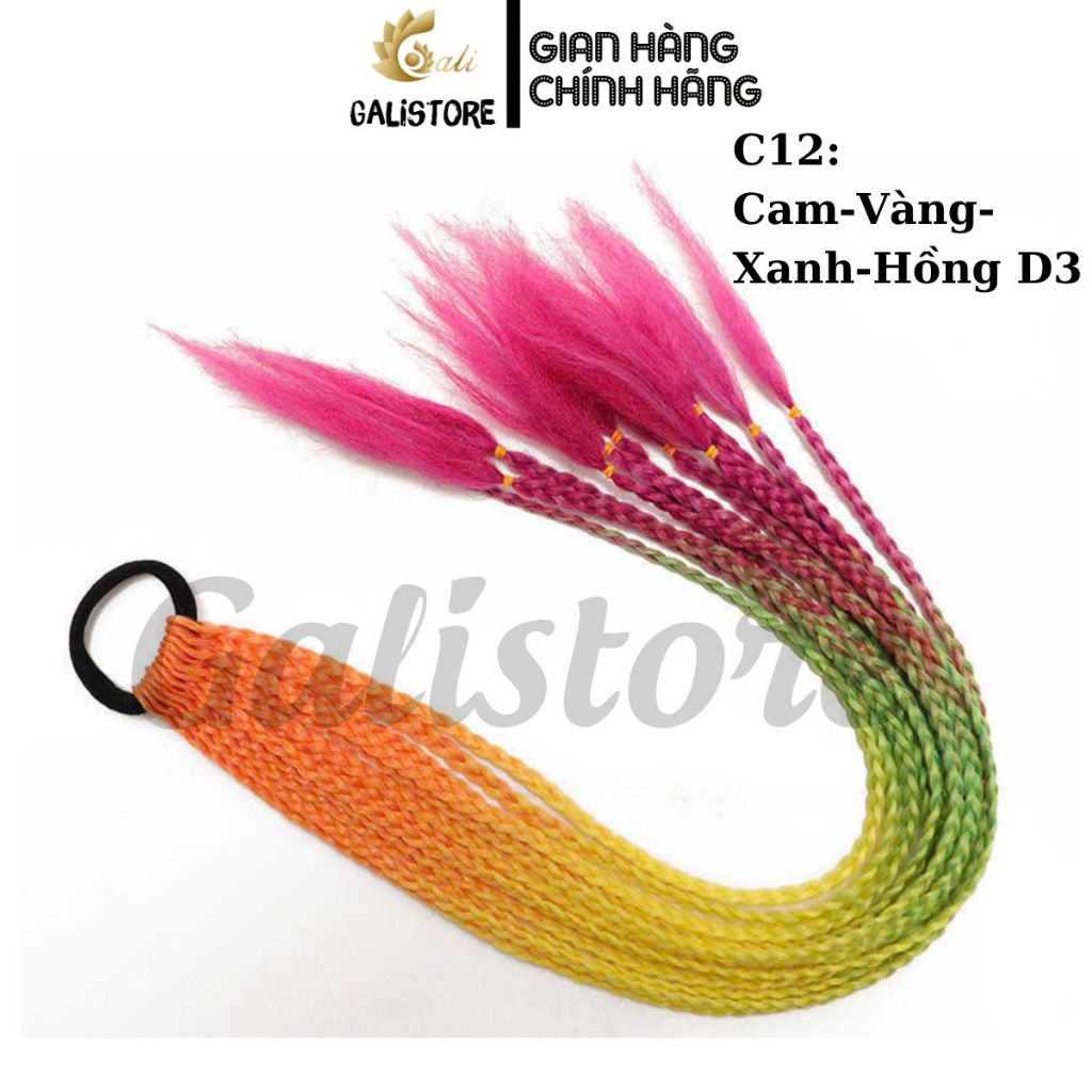 Tóc giả bện thắt bím ombre, tóc tết giả 12 nhánh 60cm tóc biểu diễn nhiều màu sắc dành cho nữ Galistore