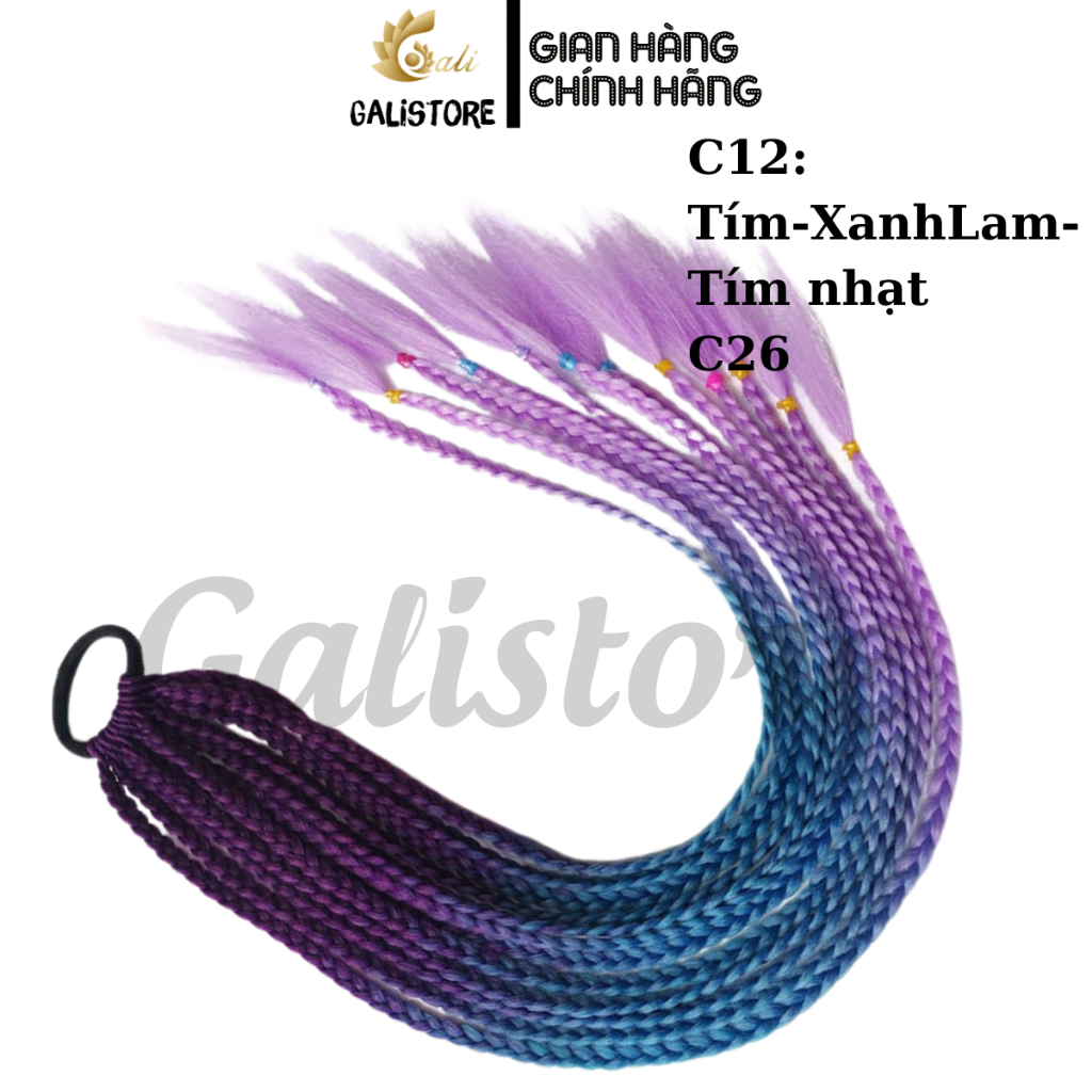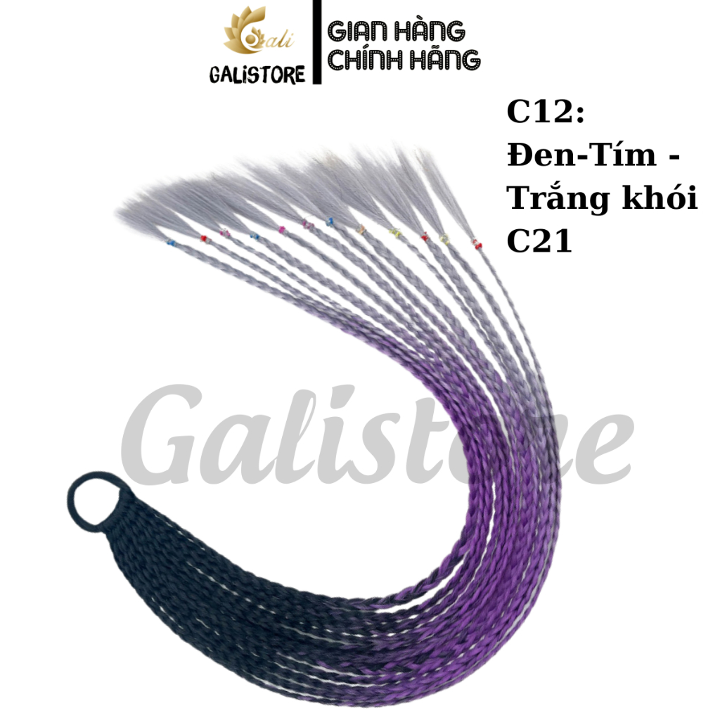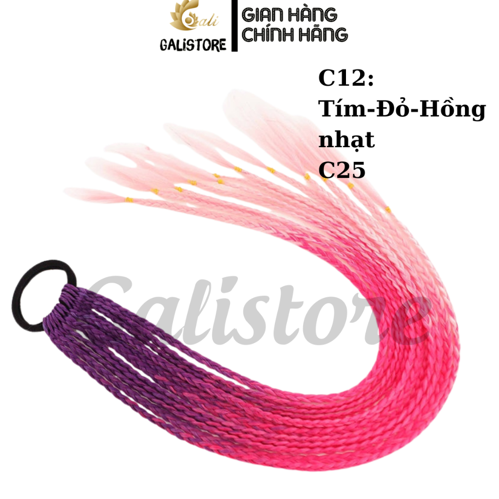 Tóc giả bện thắt bím ombre, tóc tết giả 12 nhánh 60cm tóc biểu diễn nhiều màu sắc dành cho nữ Galistore