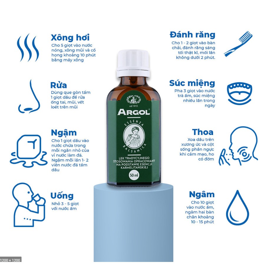 Tinh dầu Argol Ba Lan tiết đờm, hỗ trợ giảm ho, giảm khàn giọng, tạo cảm giác mát lạnh, dễ thở