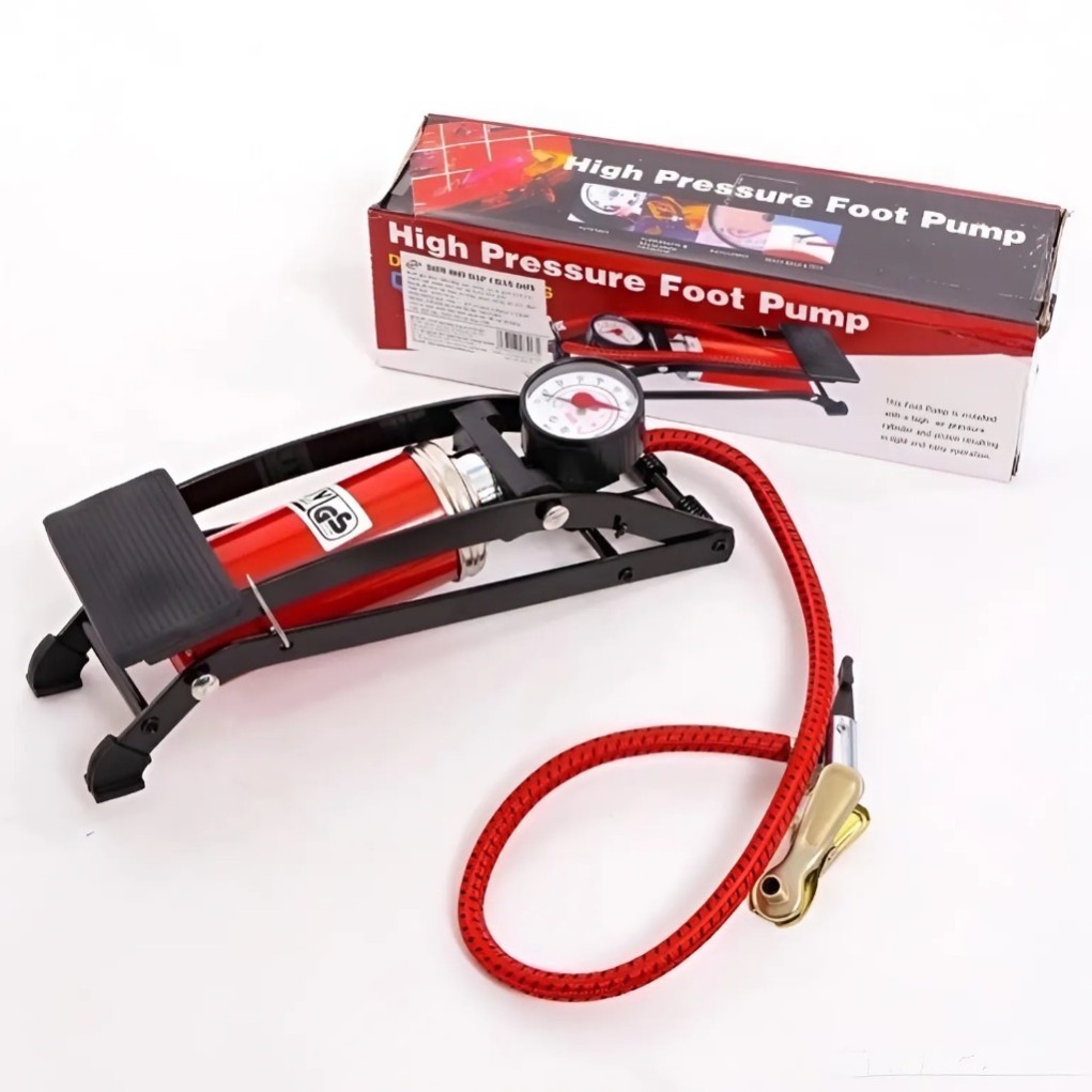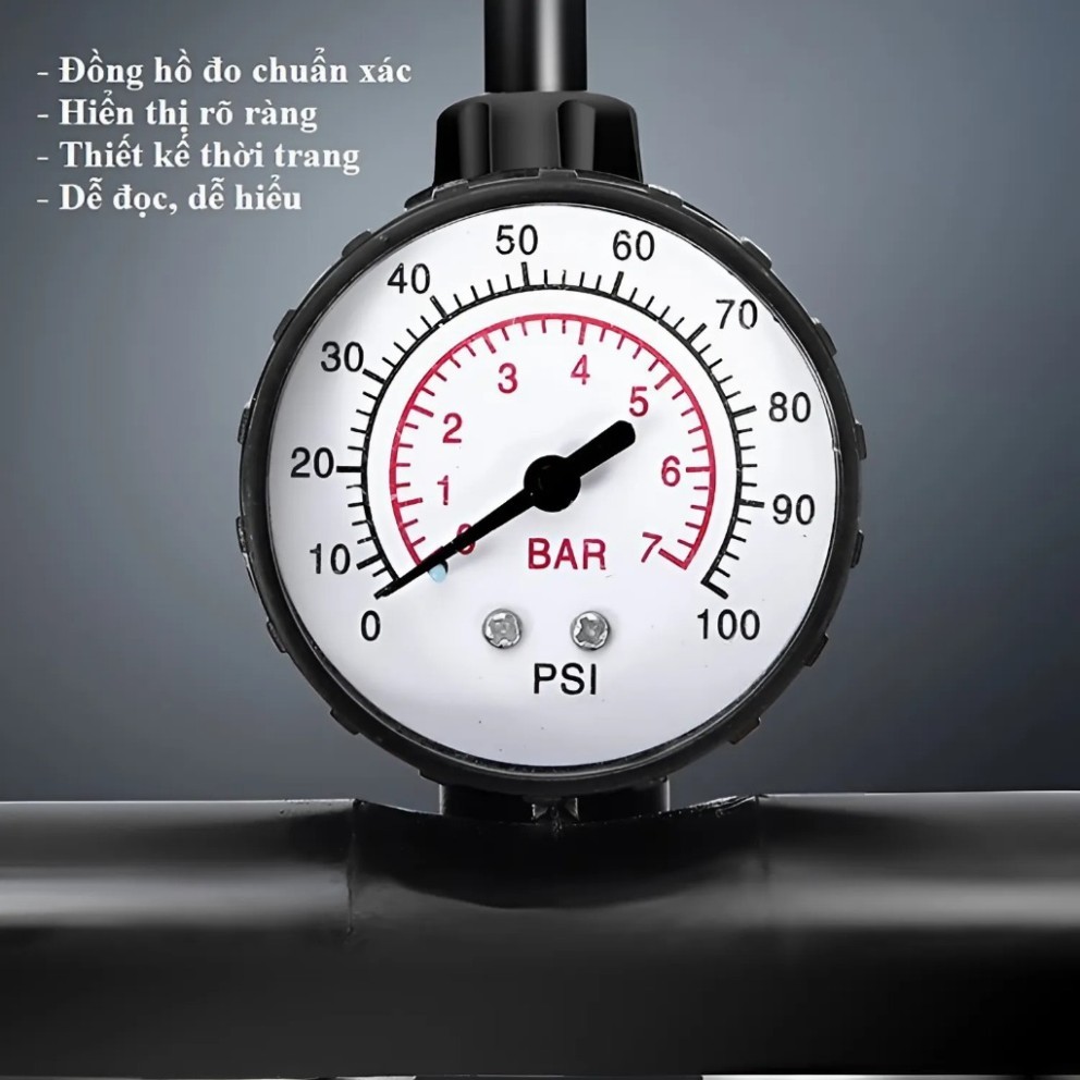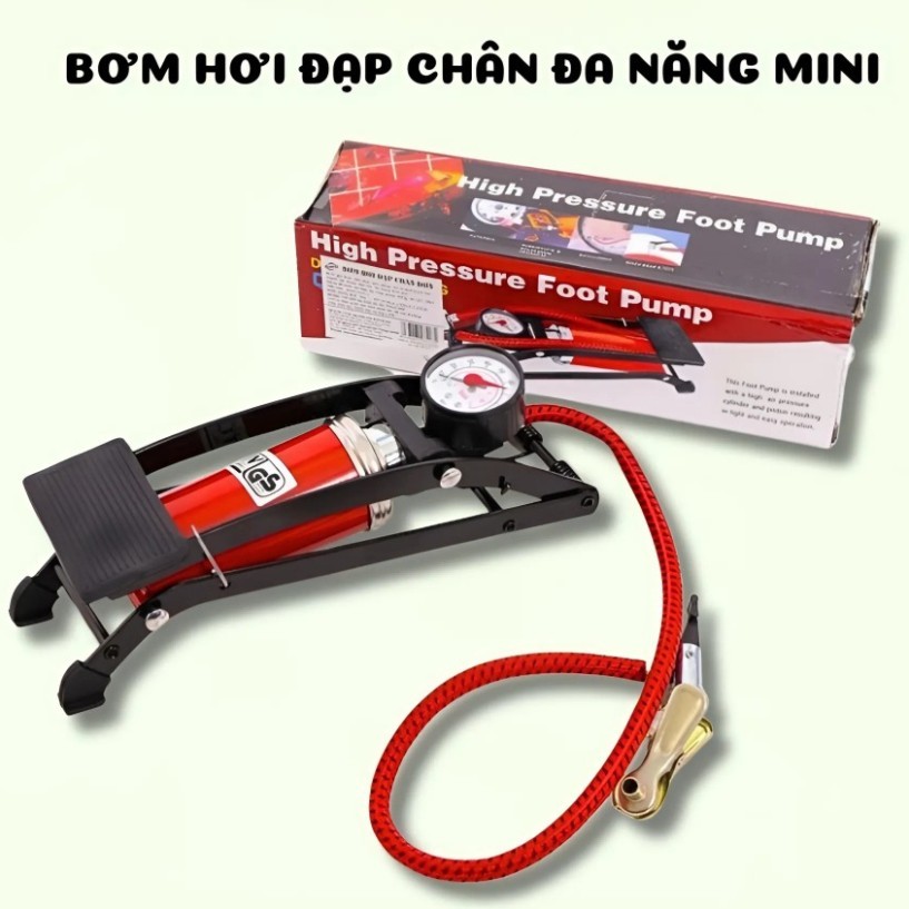 Bơm Hơi Đạp Chân Mini Có Đồng Hồ Áp Suất – Bơm Xe, Bóng, Phao – Nhỏ Gọn, Lực Mạnh, Dễ Dùng