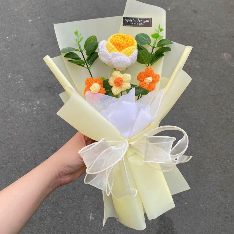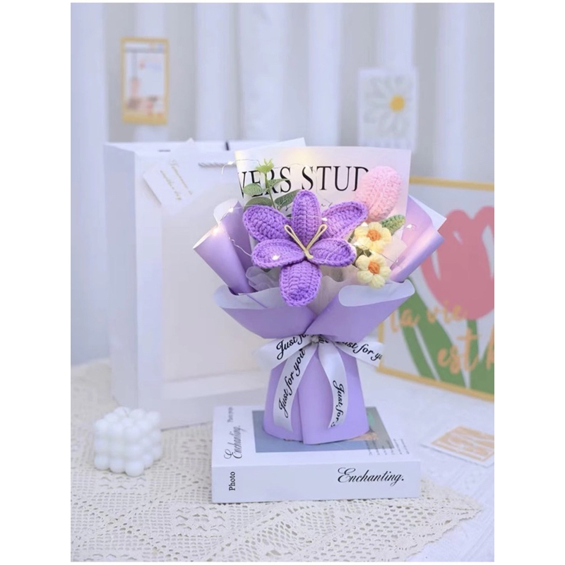 [Ảnh thật] Bó Hoa len cực xinh tặng kèm túi trong và đèn tặng sinh nhật bạn bè