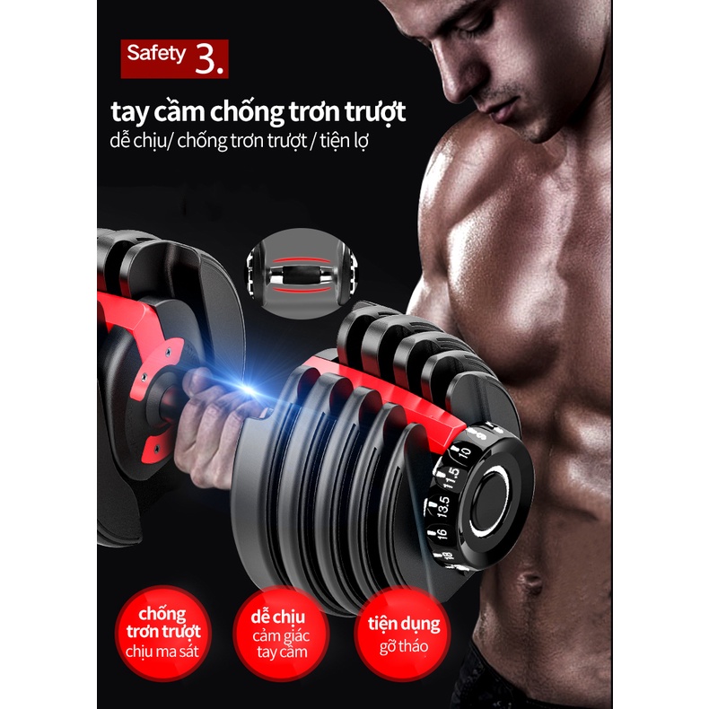 Tạ đơn điều chỉnh Tạ tay điều chỉnh Dumbell Cao Cấp 24kg Đa số điều chỉnh trọng lượng -Có khay đựng
