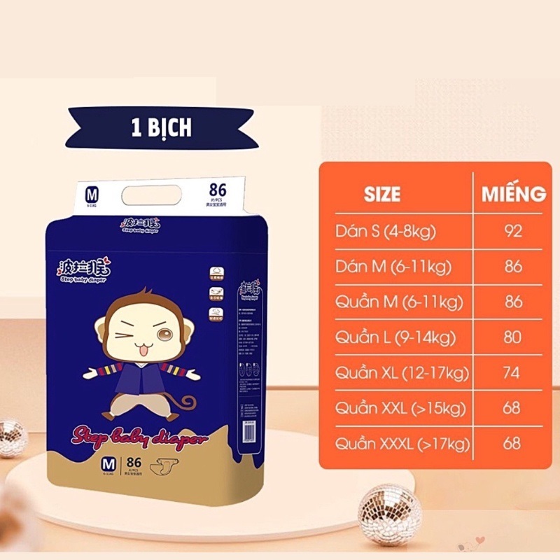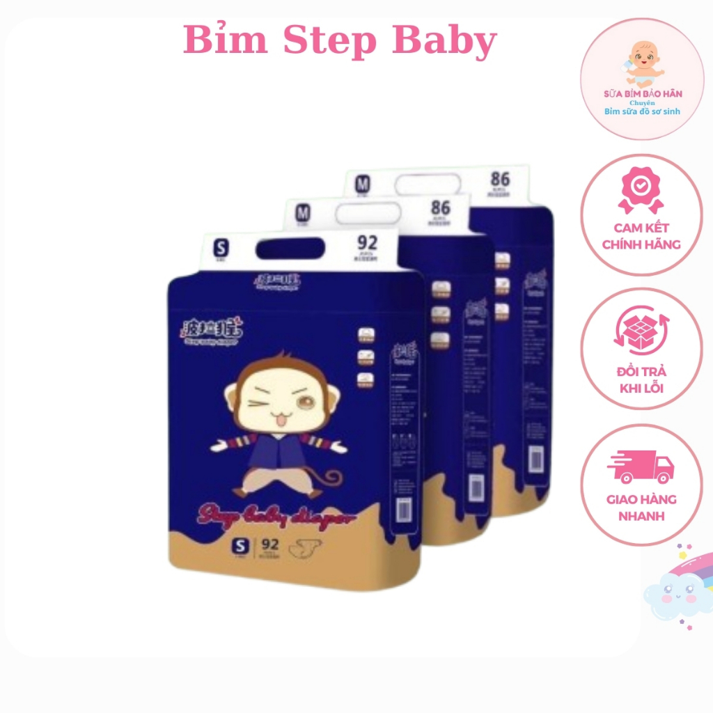 [BAO BÌ MỚI] Tã Bỉm Step Baby Nội Địa Trung – Chống Tràn 3D, Thoáng Khí, Co Giãn 360° Đủ Size
