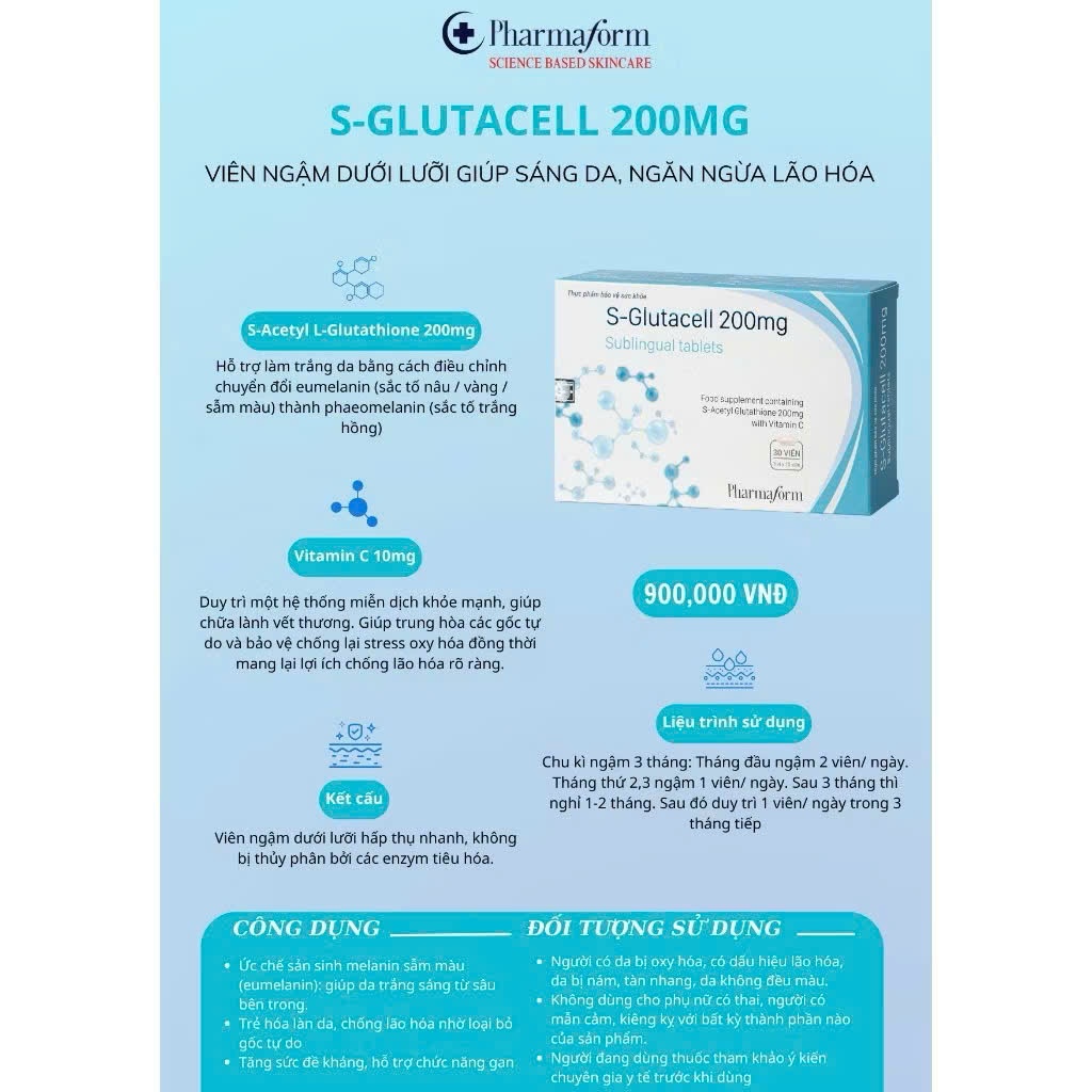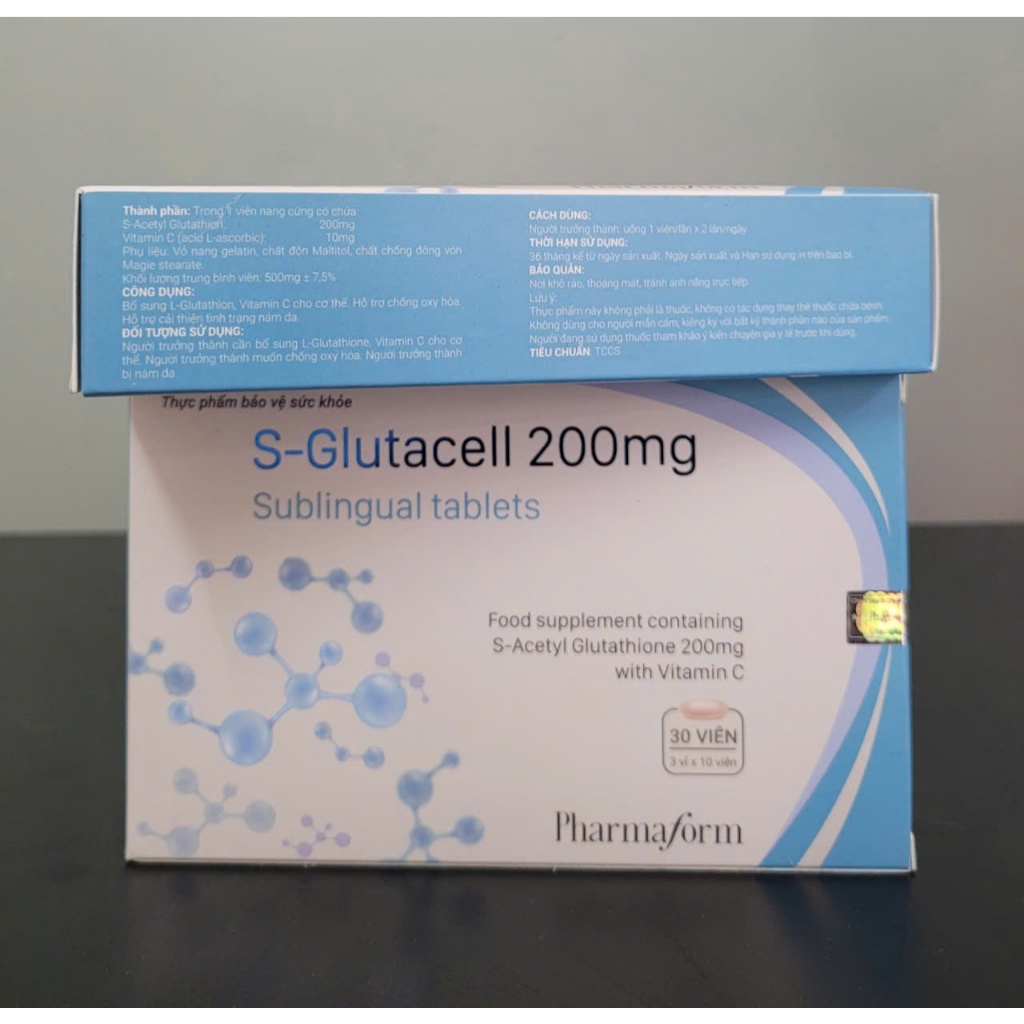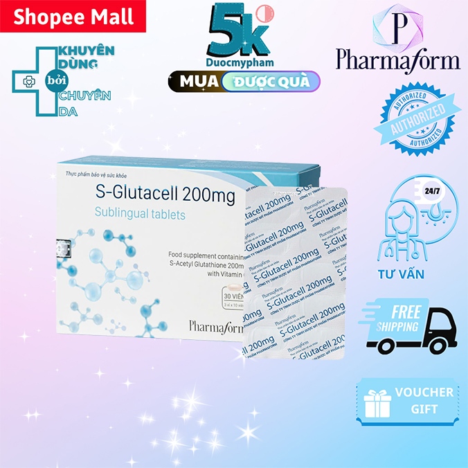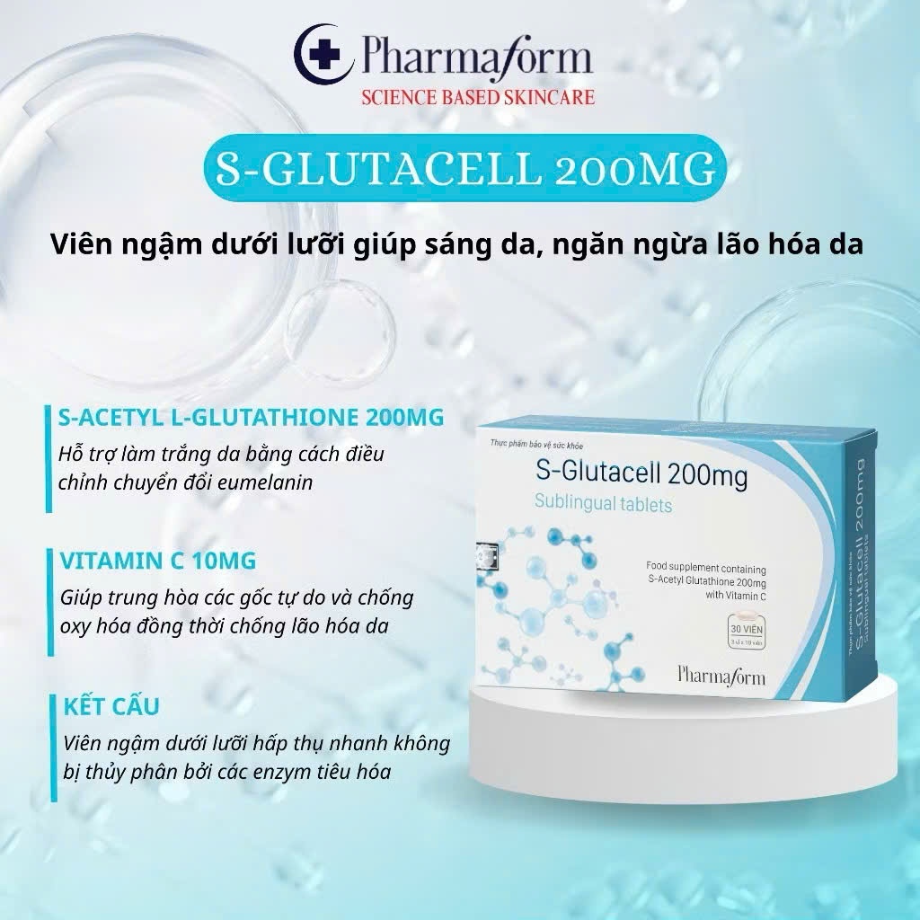 Viên Ngậm Trắng Da PharmaformS-GLUTACELL 200MG ngừa lão hoá da (Hộp 30 Viên)