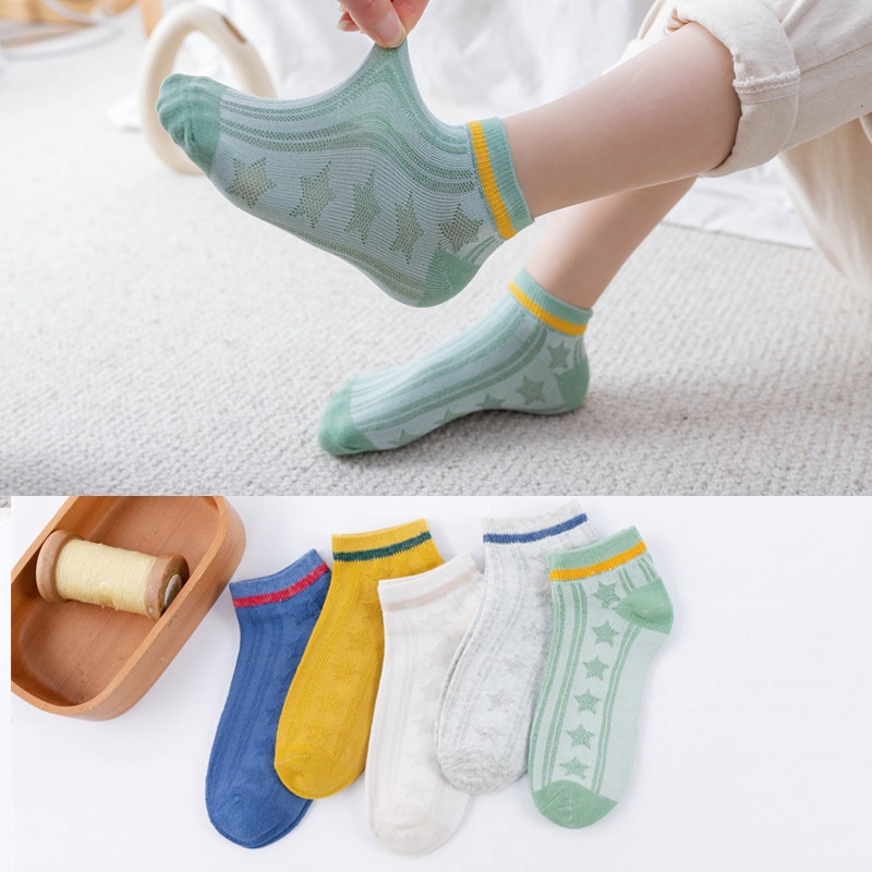 Set 5 đôi tất cotton in logo Marvel siêu anh hùng thoải mái thời trang mùa hè cho bé trai và gái