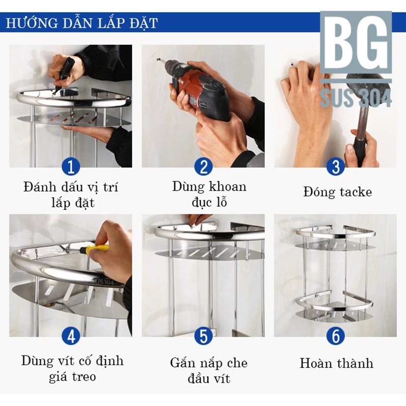 [SUS304] Kệ Góc Đựng Dầu Gội ,Sữa Tắm ,Kệ Treo Tường Đa Năng Nhà Tắm INOX304 Cao Cấp Tấm Đặc