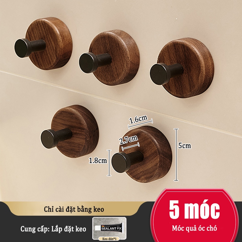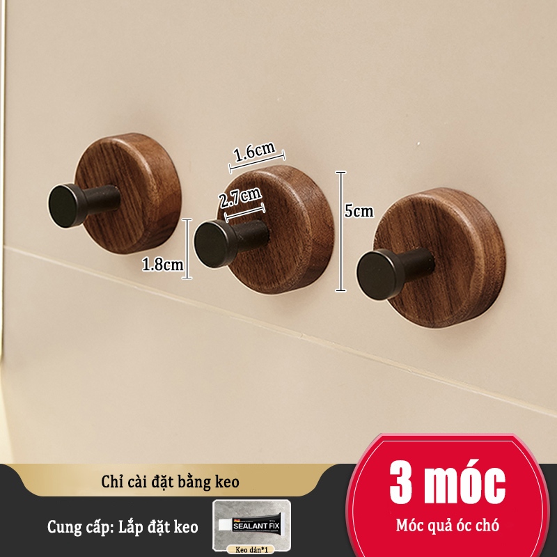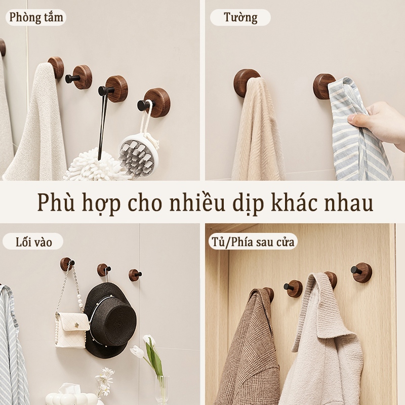 Móc gỗ óc chó, lắp đặt không đục lỗ, Kiểu treo tường móc treo, thanh móc treo đồ chịu lực siêu dính