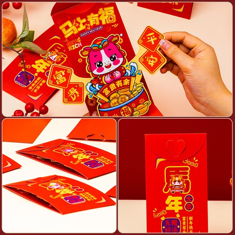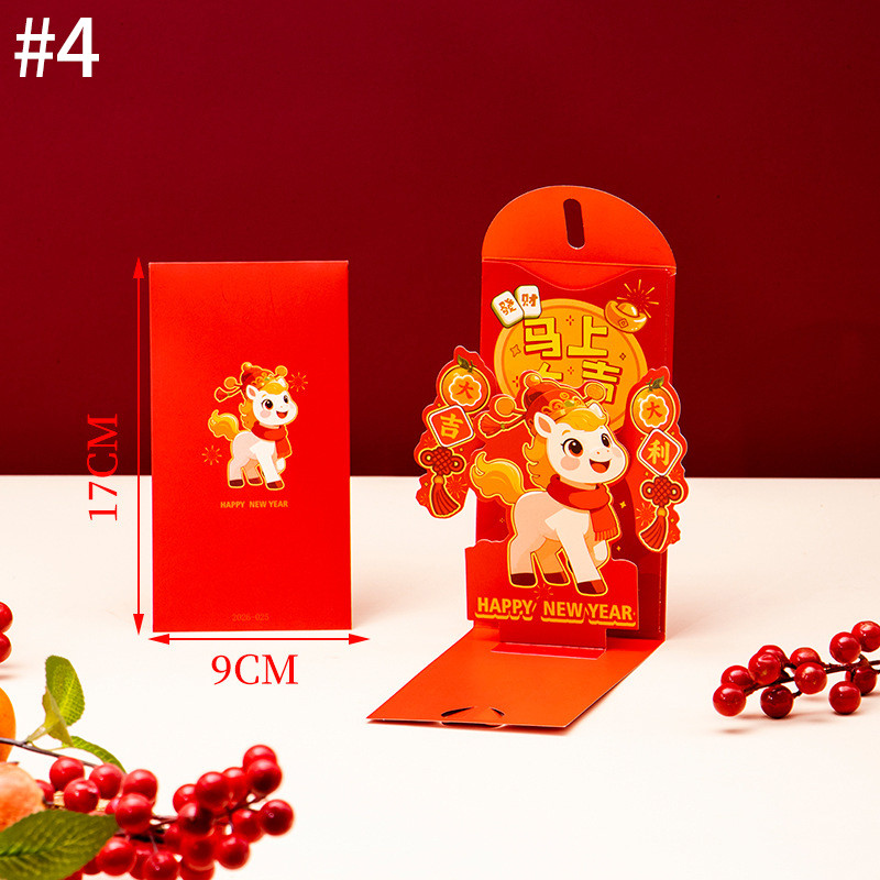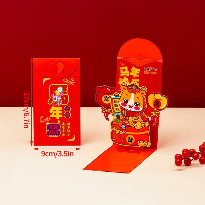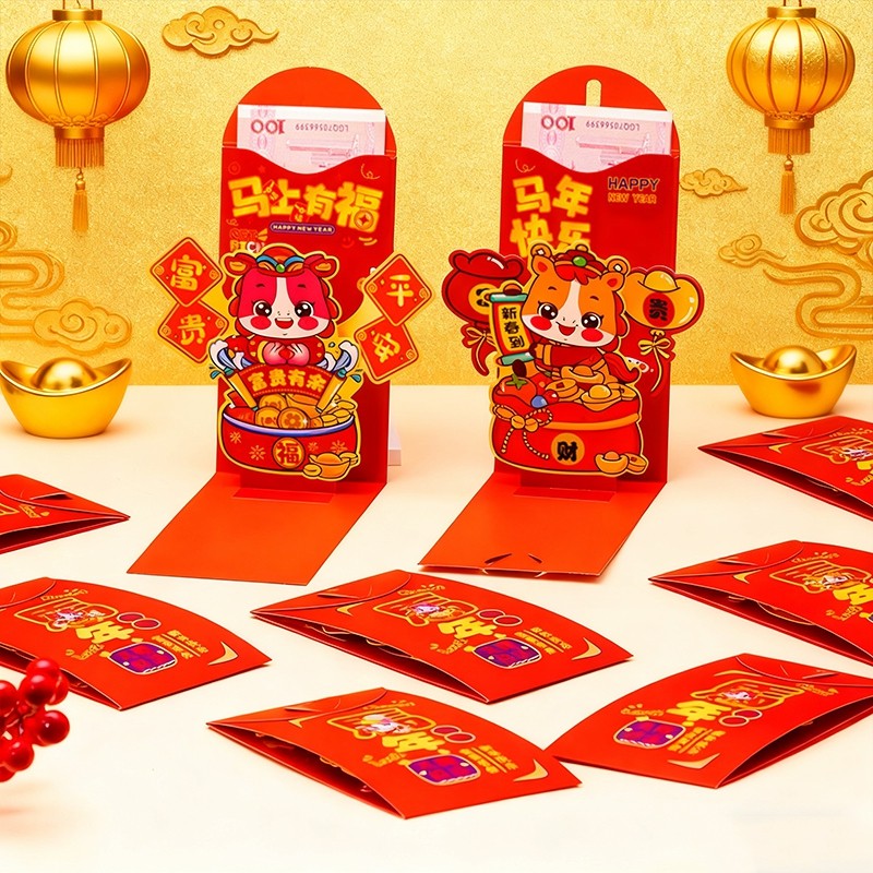 2026 CNY 3D Gói Màu Đỏ Có Thể Gập Lại Phong Bì Màu Đỏ Chúc Mừng Năm Ngựa Túi Tiền Quà Tặng Năm Mới