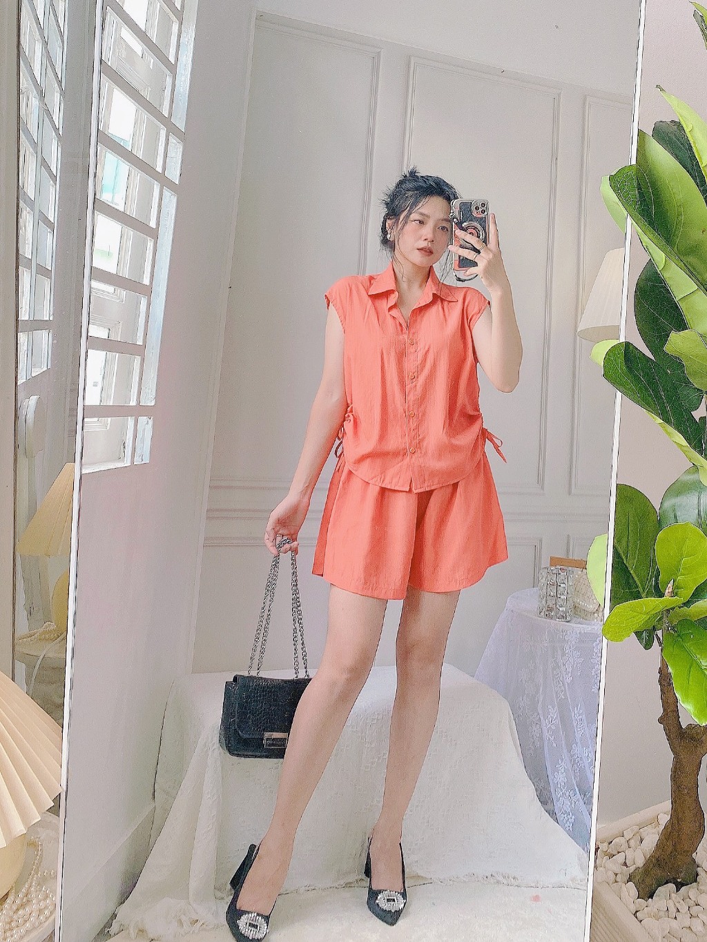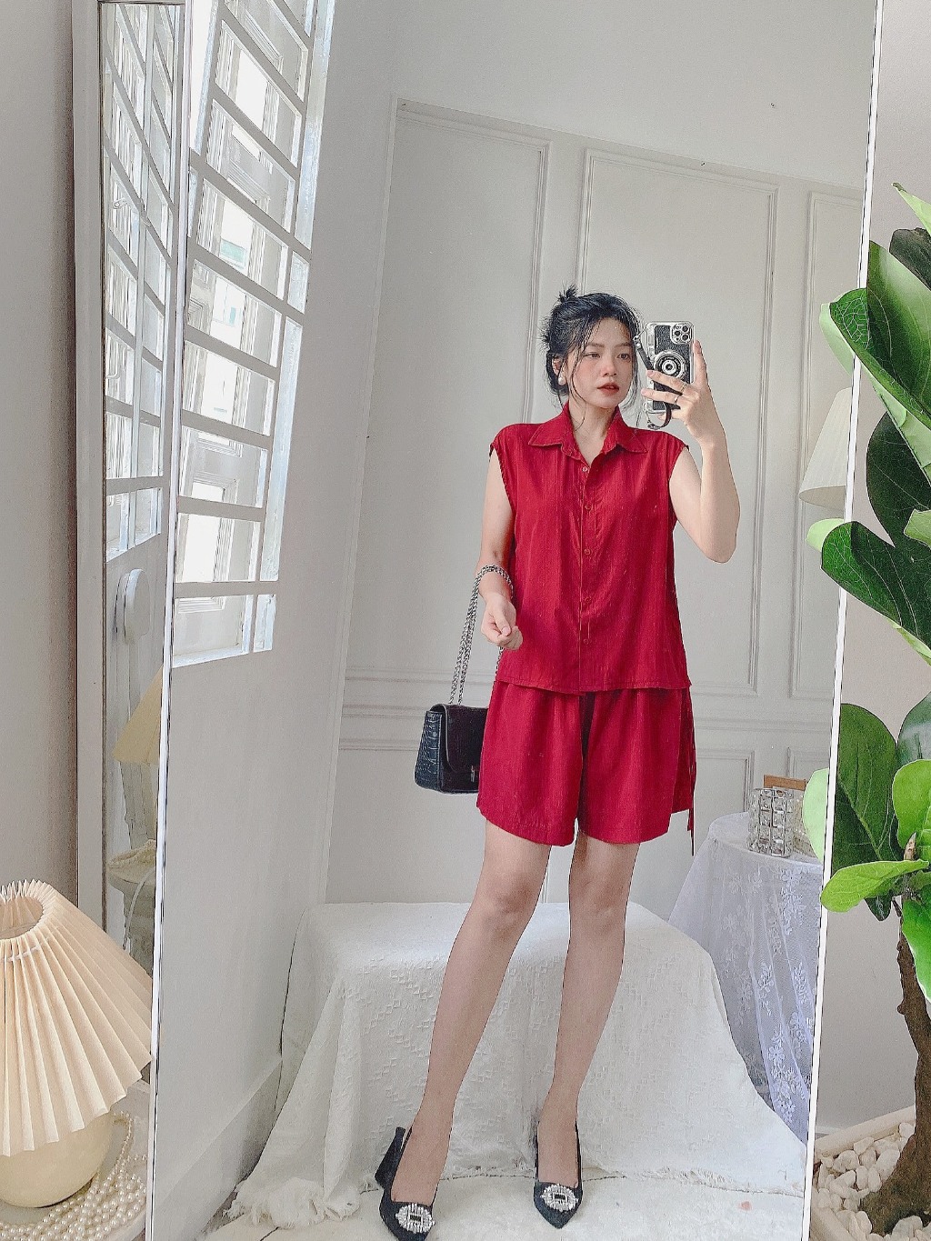 Set đũi áo sơ mi rút dây 2 bên quần short