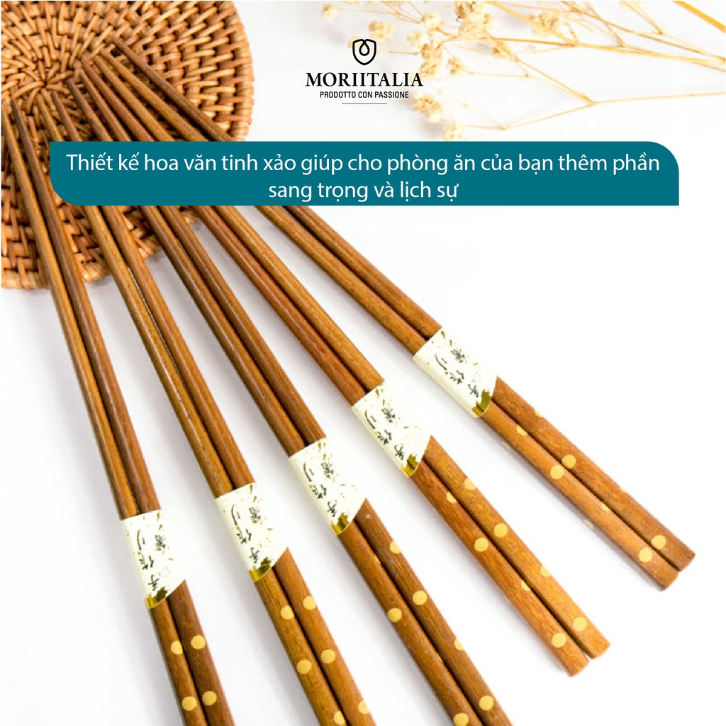 Vỉ 5 đôi đũa gỗ Kokusai sản xuất theo tiêu chuẩn Nhật Bản, Gỗ tự nhiên, chiều dài 22,5cm