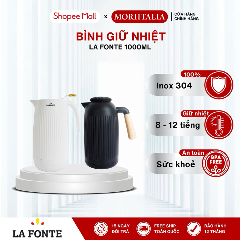 Bình thuỷ chân không La Fonte, Dung tích 1000ml, Thủy tinh trắng siêu giữ nhiệt lên đến 24h - MORIITLIA