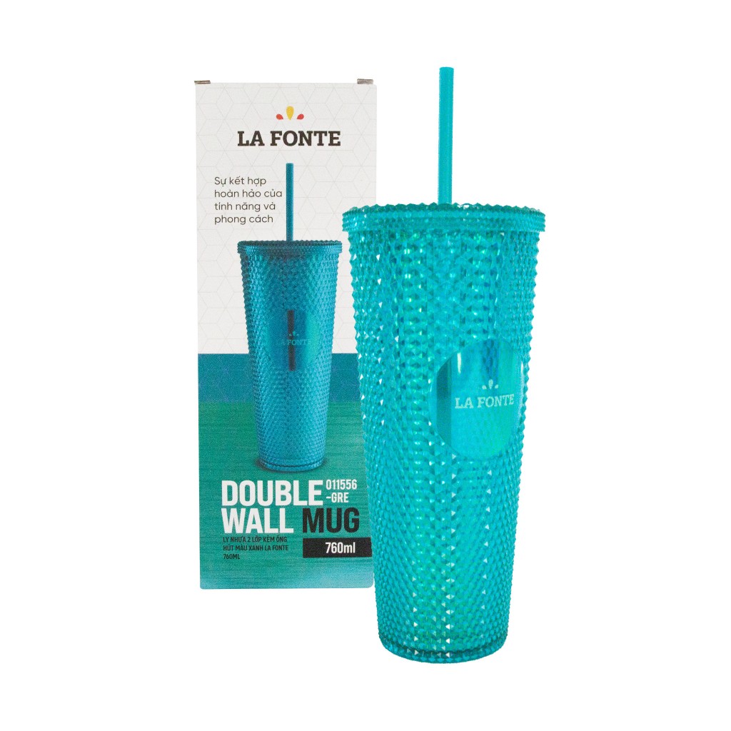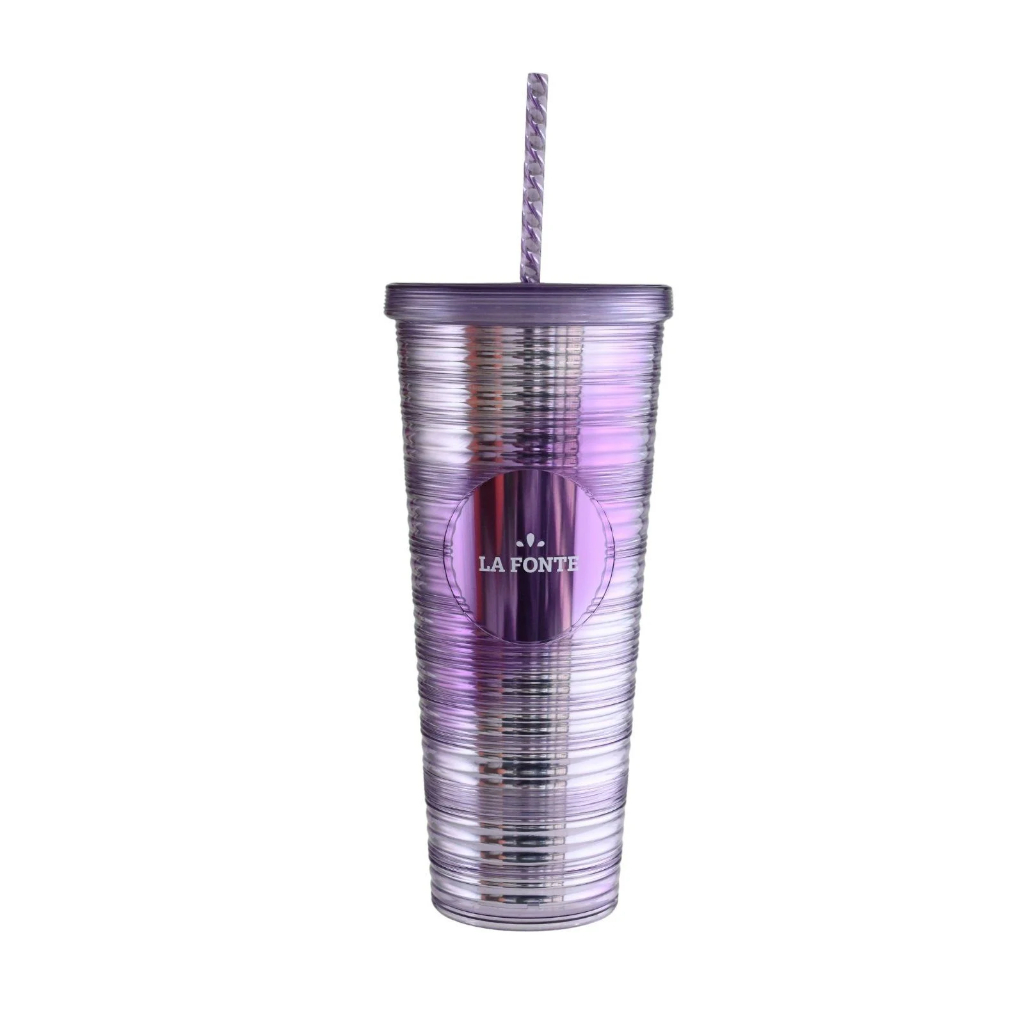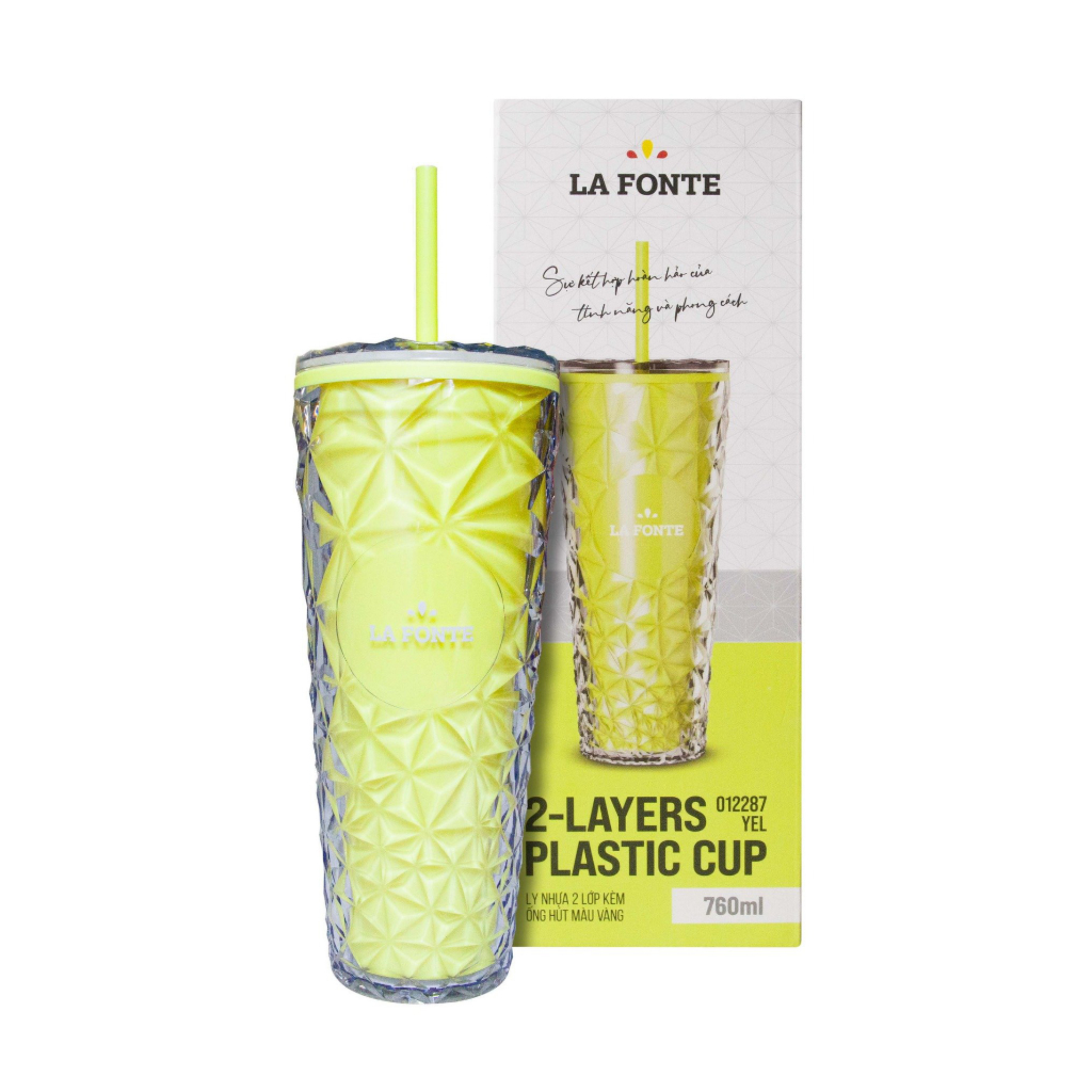 Ly Kim Cương 2 Lớp Kèm Ống Hút - LA FONTE, Dung Tích 760ml, Chất Liệu PP & ABS Cao Cấp