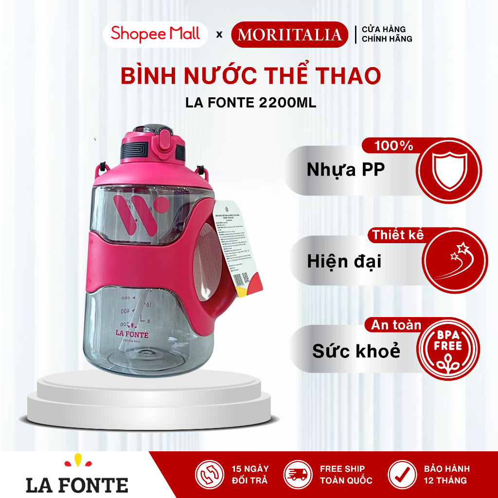 Bình Nước Thể Thao 2200ml La Fonte – Dung Tích Lớn – Có Quai Đeo & Ống Hút – Nhựa Không BPA – Gym, Dã Ngoại, Văn Phòng
