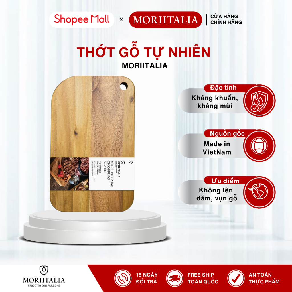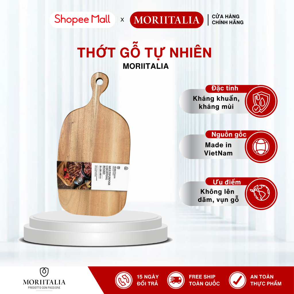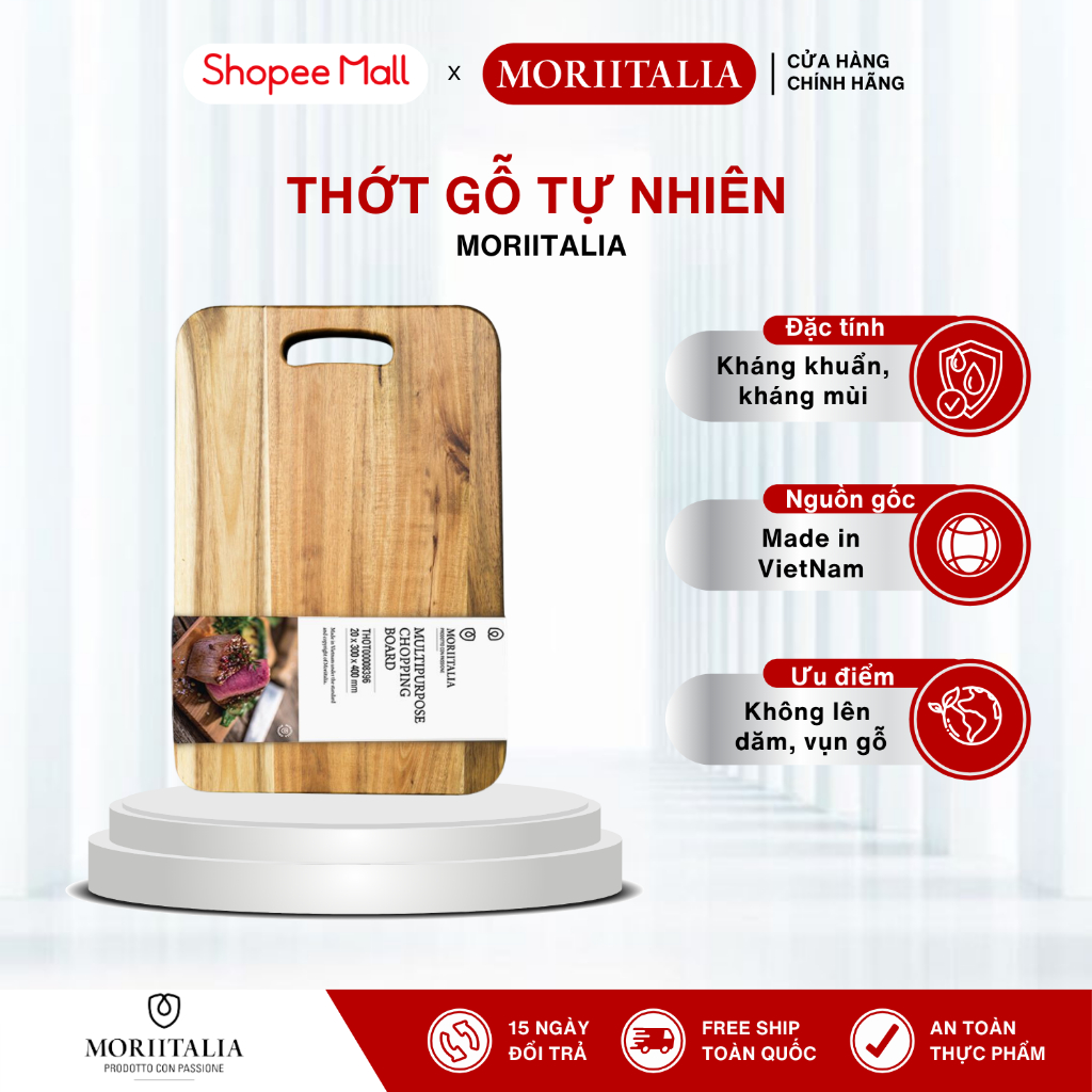Thớt Gỗ Tràm Moriitalia Chính Hãng – Kháng Khuẩn, Bền Đẹp, Đa Dụng Có Tay Cầm, Nhiều Kích Thước
