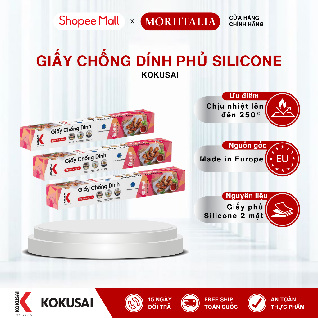 Giấy Chống Dính Phủ Silicon KOKUSAI, Kích thước 30cm / 45cm, Dùng để gói, chiên, hấp thức ăn không bị thấm dầu ra ngoài