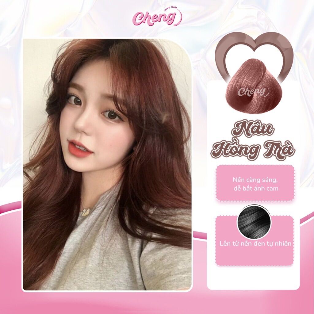 Nhuộm Tóc Màu NÂU HỒNG TRÀ Không Tẩy Kèm oxy và gang tay
