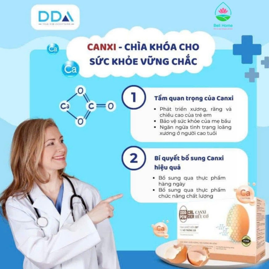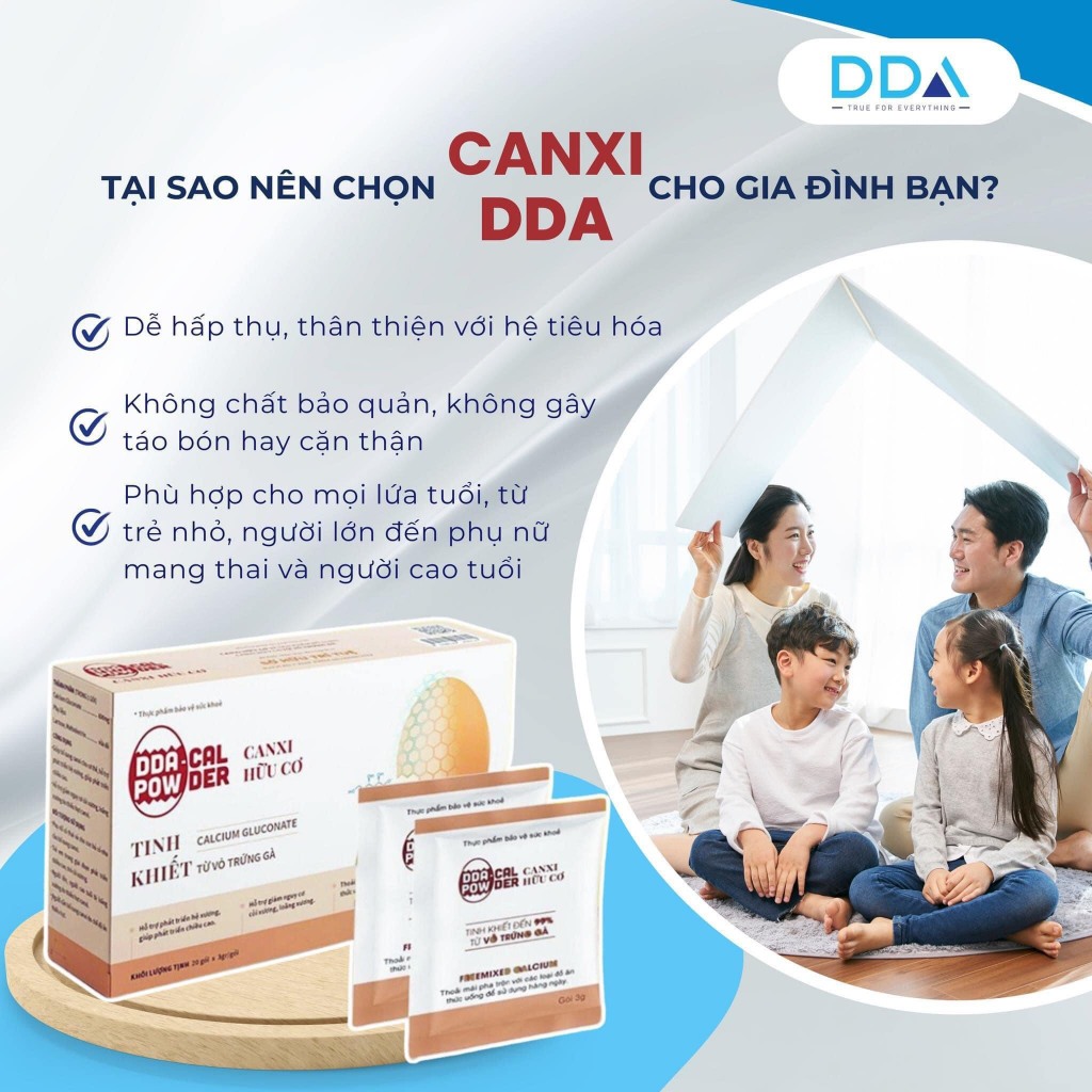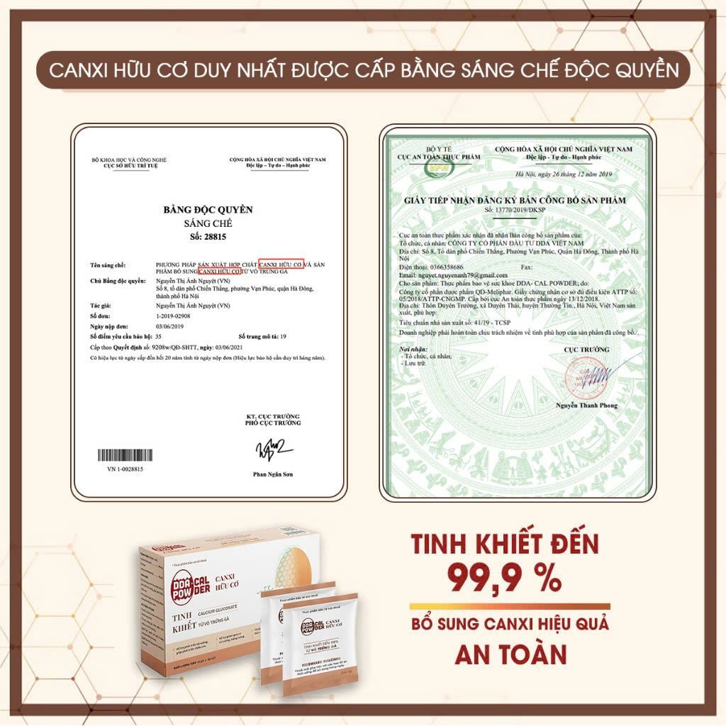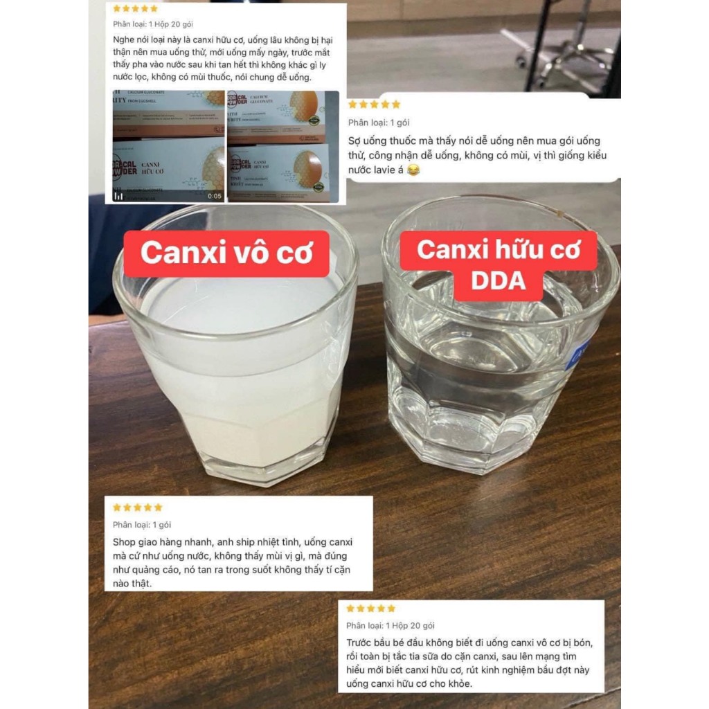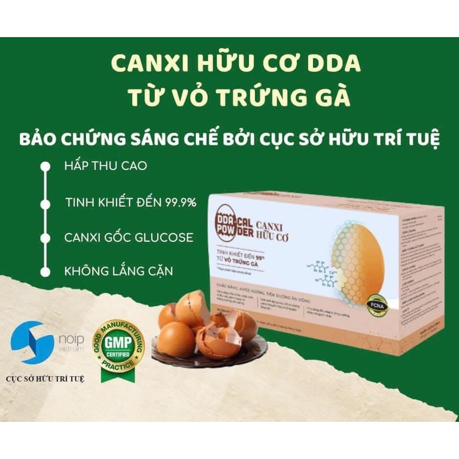 Canxi hữu cơ DDA canxi hữu cơ từ vỏ trứng gà hộp 20 gói bổ sung canxi hòa tan không màu, không mùi, không vị hấp thụ nha
