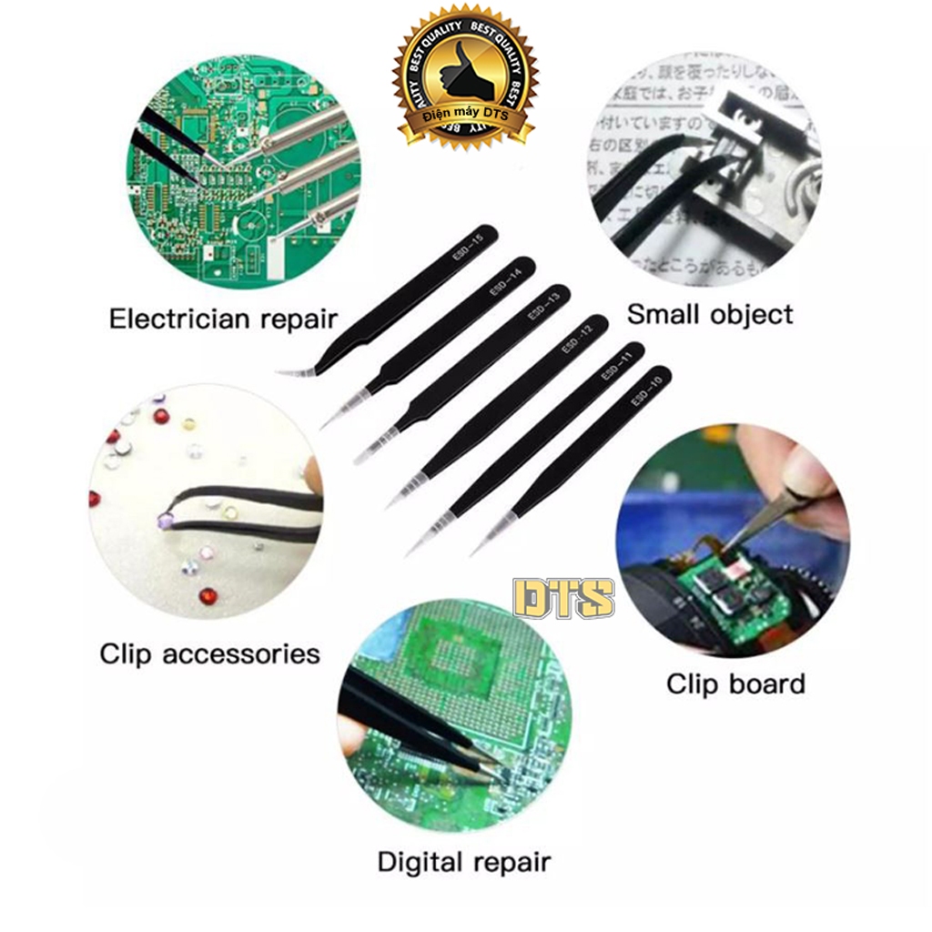 Bộ 6 nhíp gắp đa năng ESD sửa chữa điện tử, điện thoại, máy tính - Ghép lông mi, nối tóc, nhặt lông yến - Chính xác cao