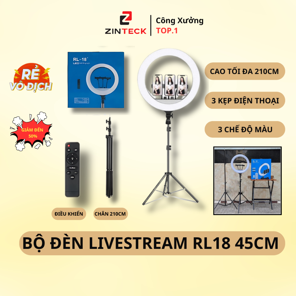 Bộ Đèn Live Stream RL 18 Size 45cm + Chân Đèn + Kẹp Điện Thoại