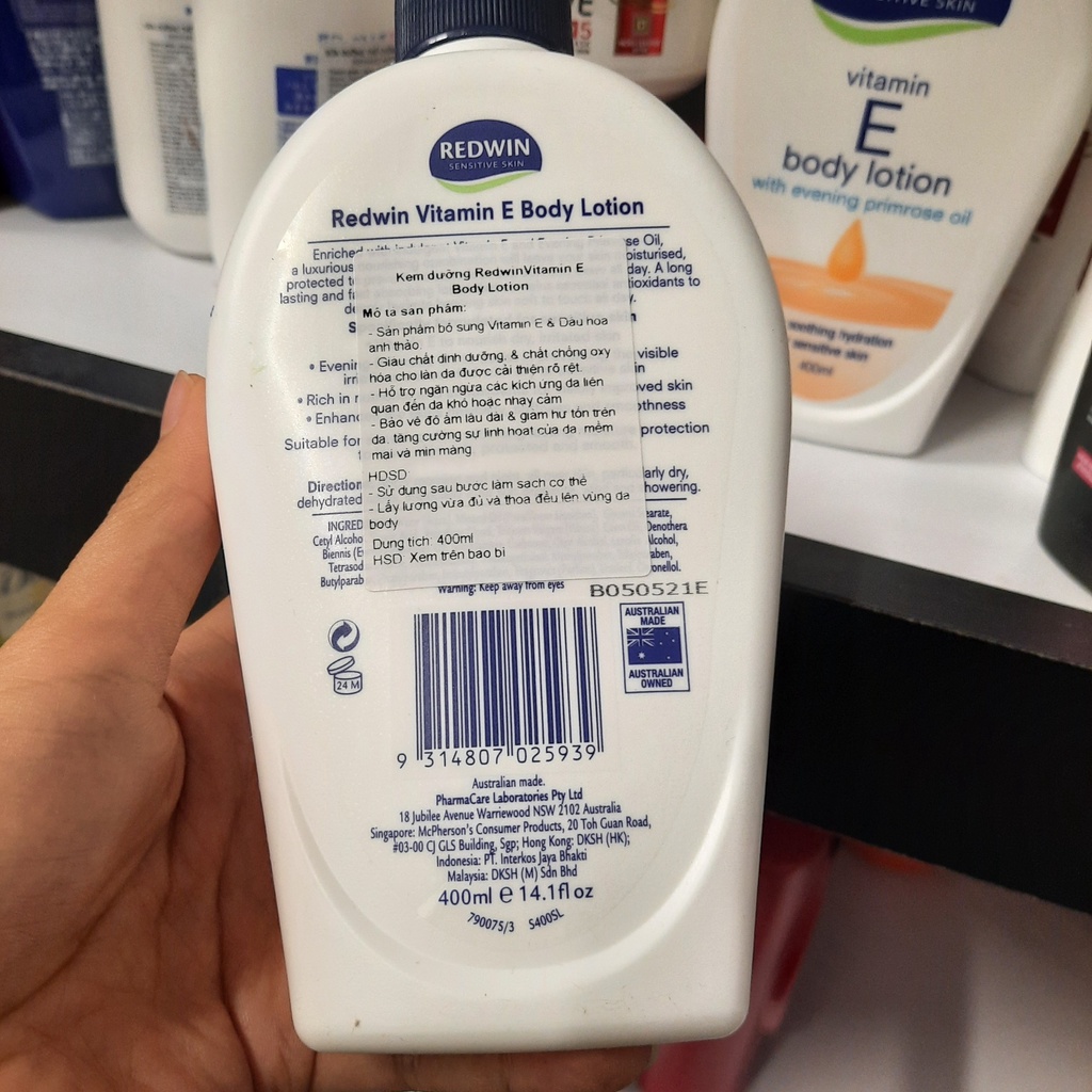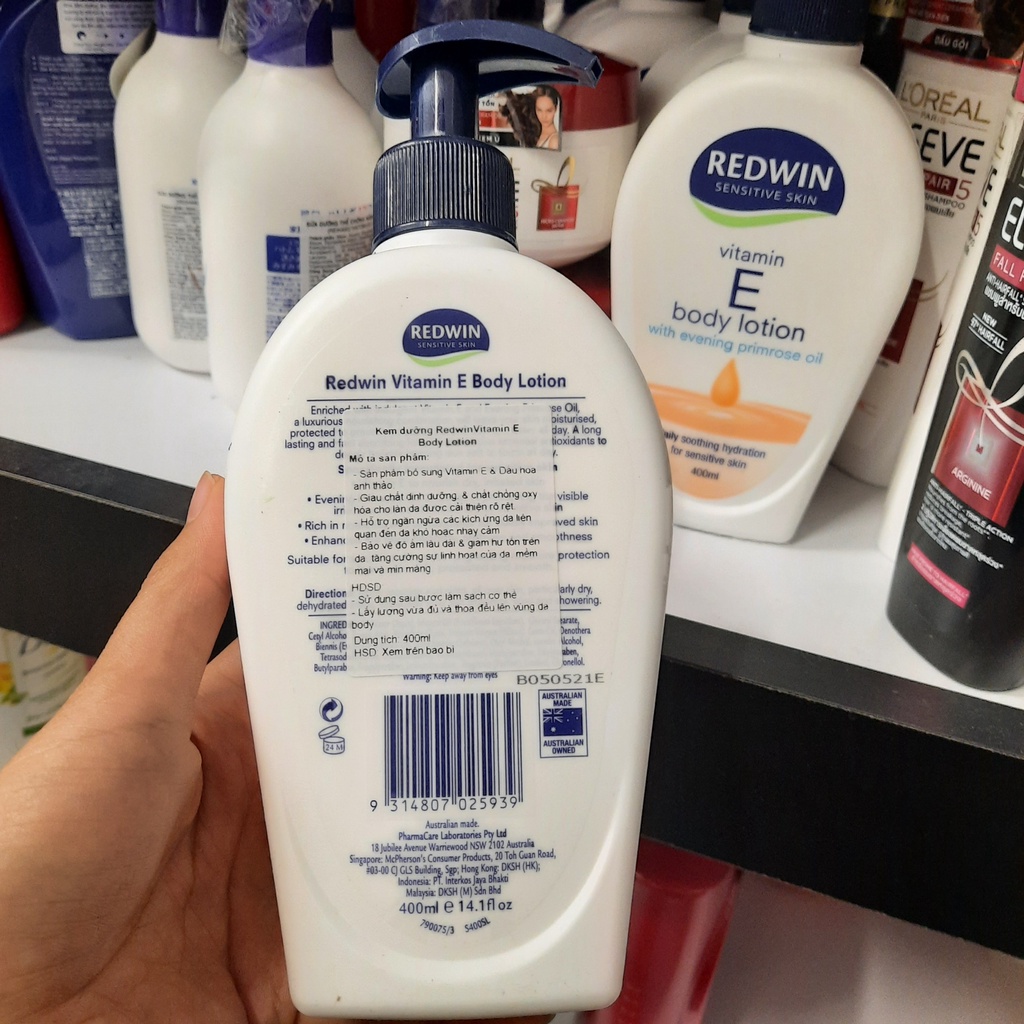 Dưỡng thể Redwin Vitamin E Body Lotion Úc 400ml dưỡng ẩm sáng da