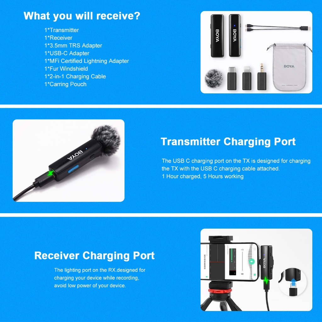 BOYA BOYALINK A1/A2 micro không dây mic thu âm cài áo chống ồn Thích hợp cho iphone Type-C 3.5