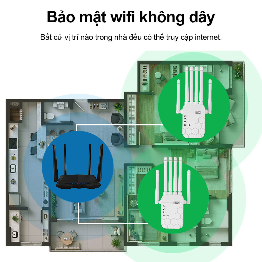 Bán chạy Kích wifi 6 râu 5G công suất 1200Mbps 2.4G 300Mbps Mở rộng sóng router phát wifi xuyên tường mạnh