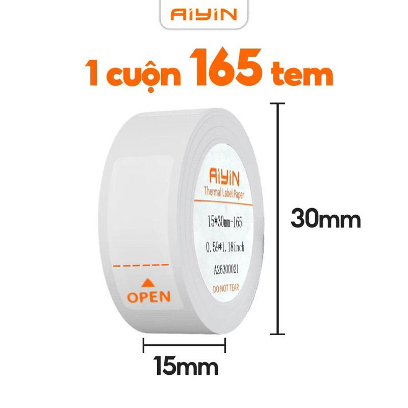 Giấy in tem nhãn D11, Cuộn 165 tem kích thước 15x30mm cho máy PikDik Aiyin D11 pro dạng cuộn tròn, có keo decal dính sẵn