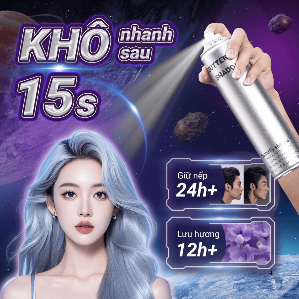 Gôm Xịt Giữ Nếp Tóc Butterfly Shadow Chính Hãng – Tự Nhiên, Không Bết Dính, Giữ Nếp Chuẩn Salon