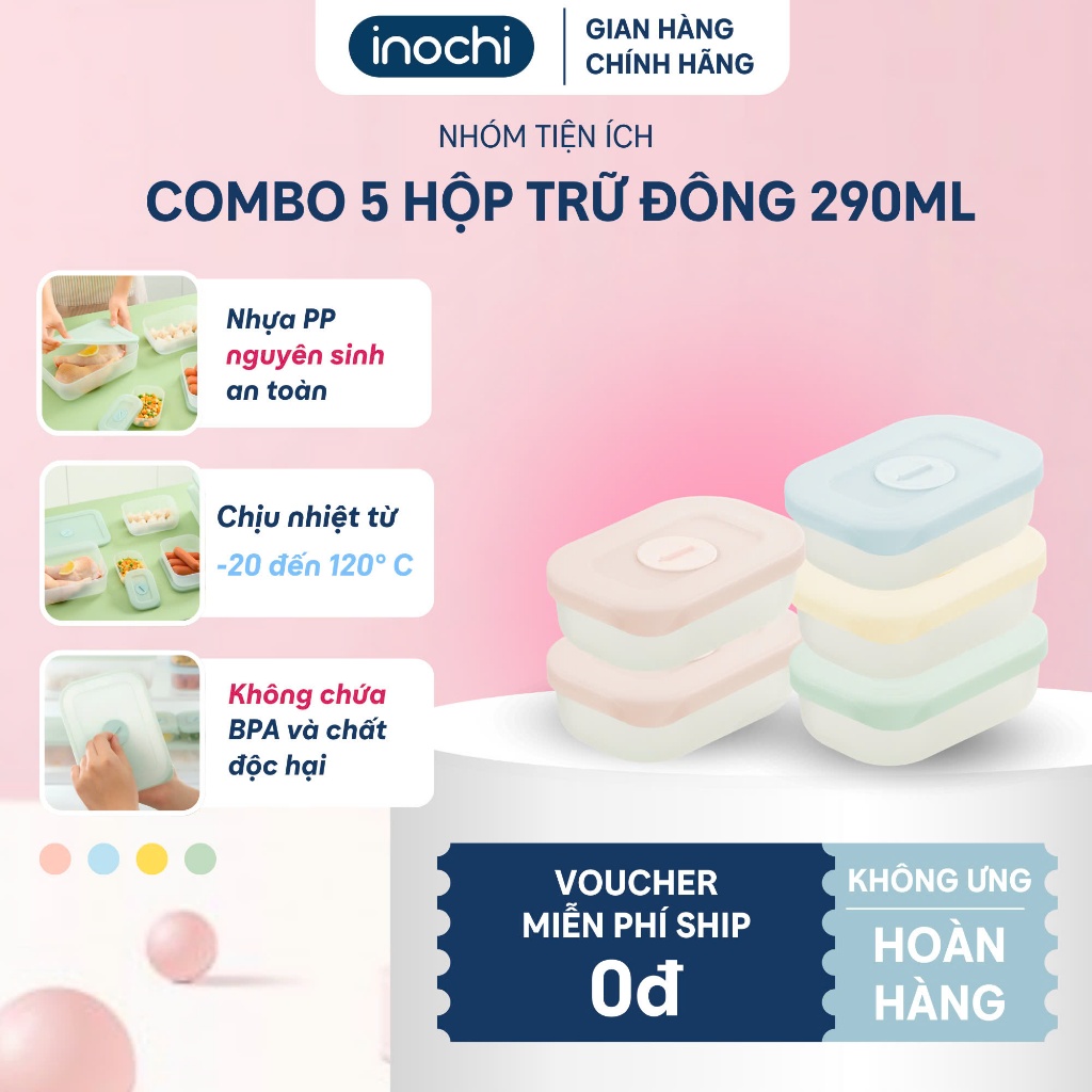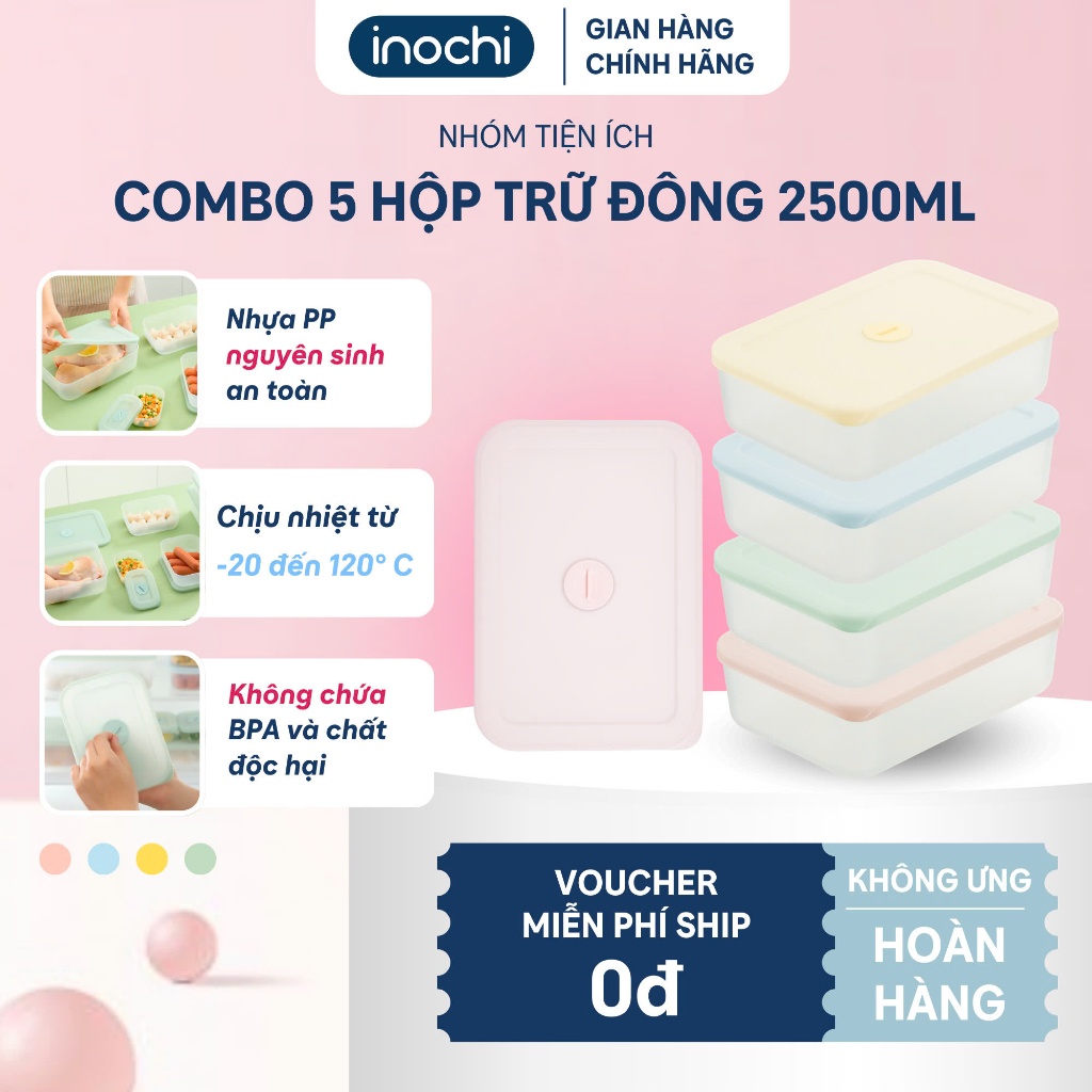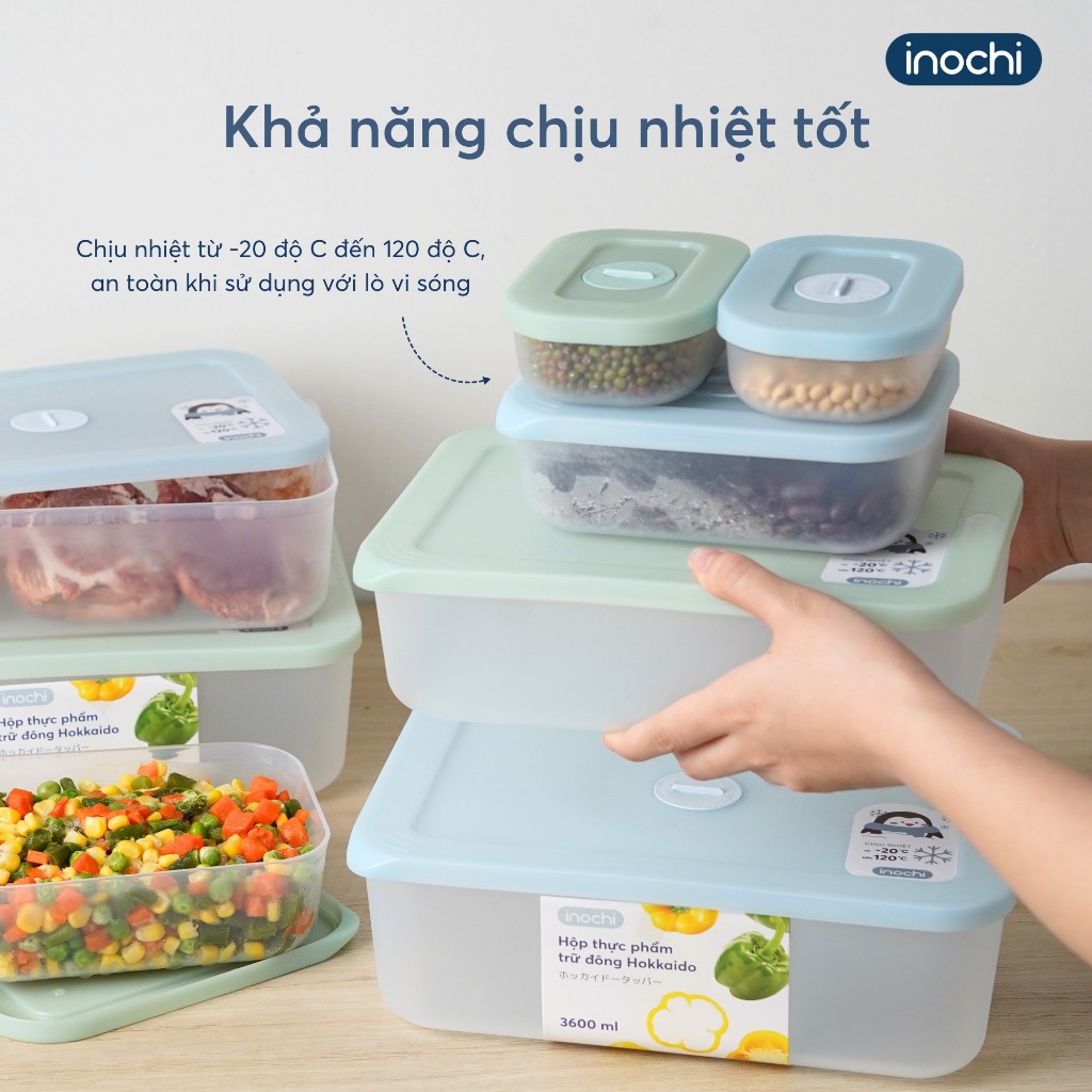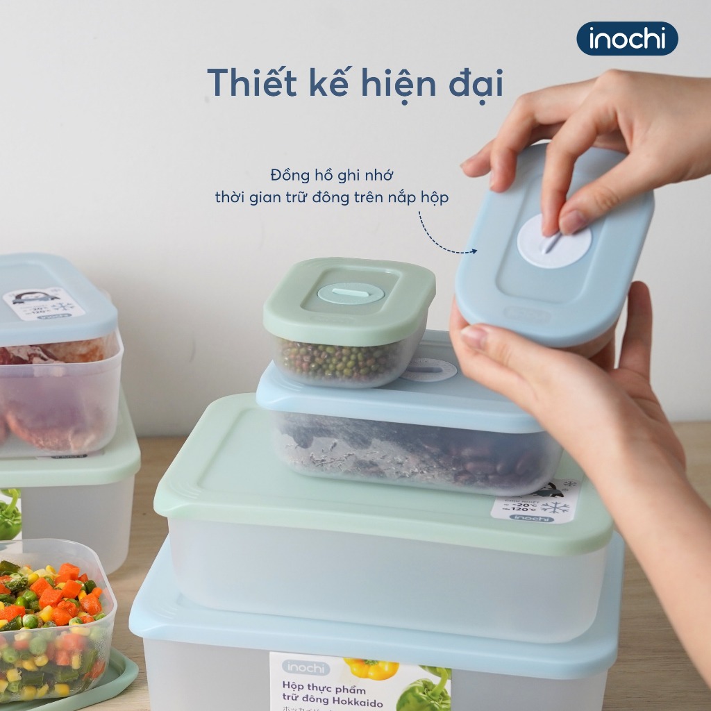 Bộ 5 Hộp Trữ Đông Hokkaido - Inochi: Nhựa PP, An Toàn, Kín Khít, Bảo Quản Tươi Ngon
