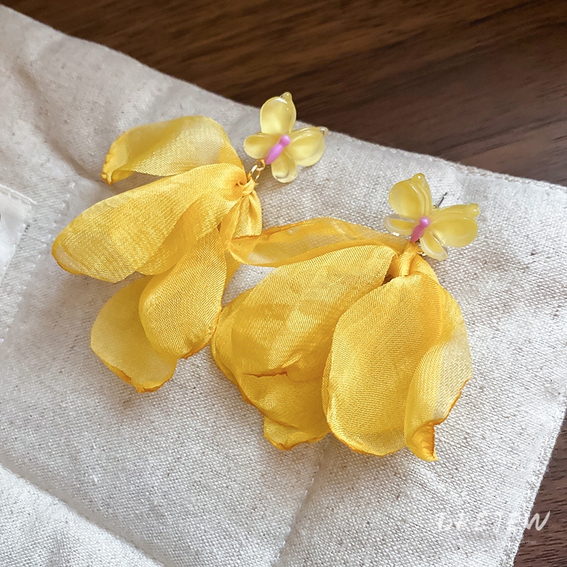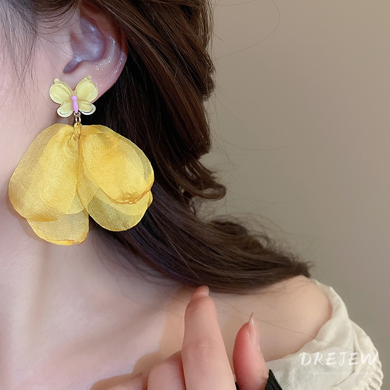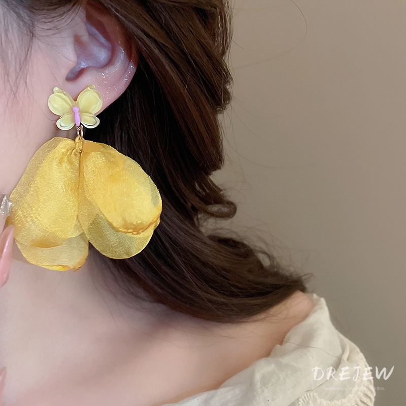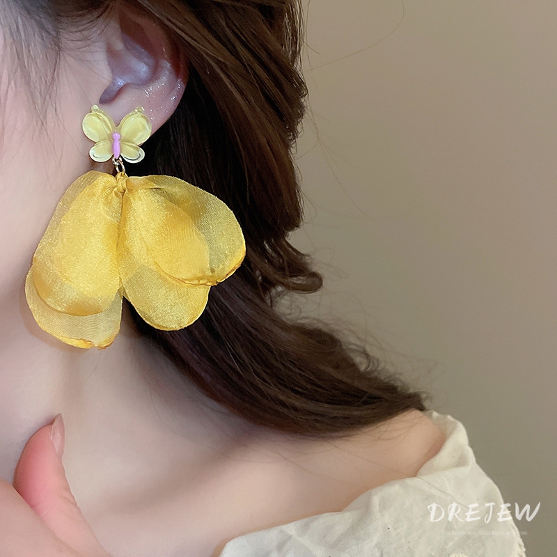 Drejew 925Silver kim lưới gạc bông tai hoa phong cách kỳ nghỉ thời trang bông tai đa năng nhẹ nhàng và ngọt ngào
