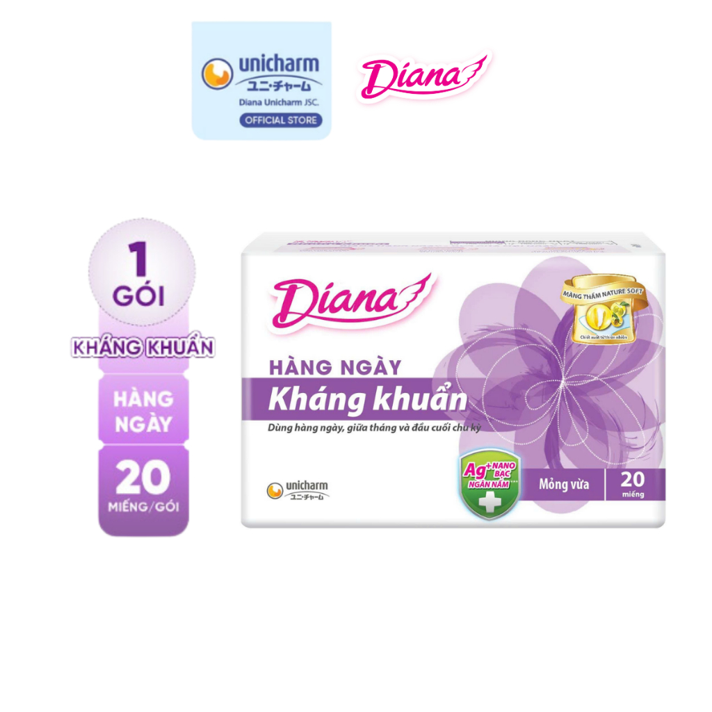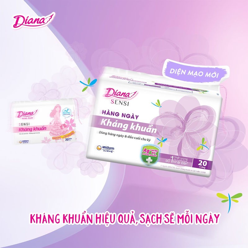 Băng vệ sinh Diana hàng ngày Sensi kháng khuẩn gói 20 miếng