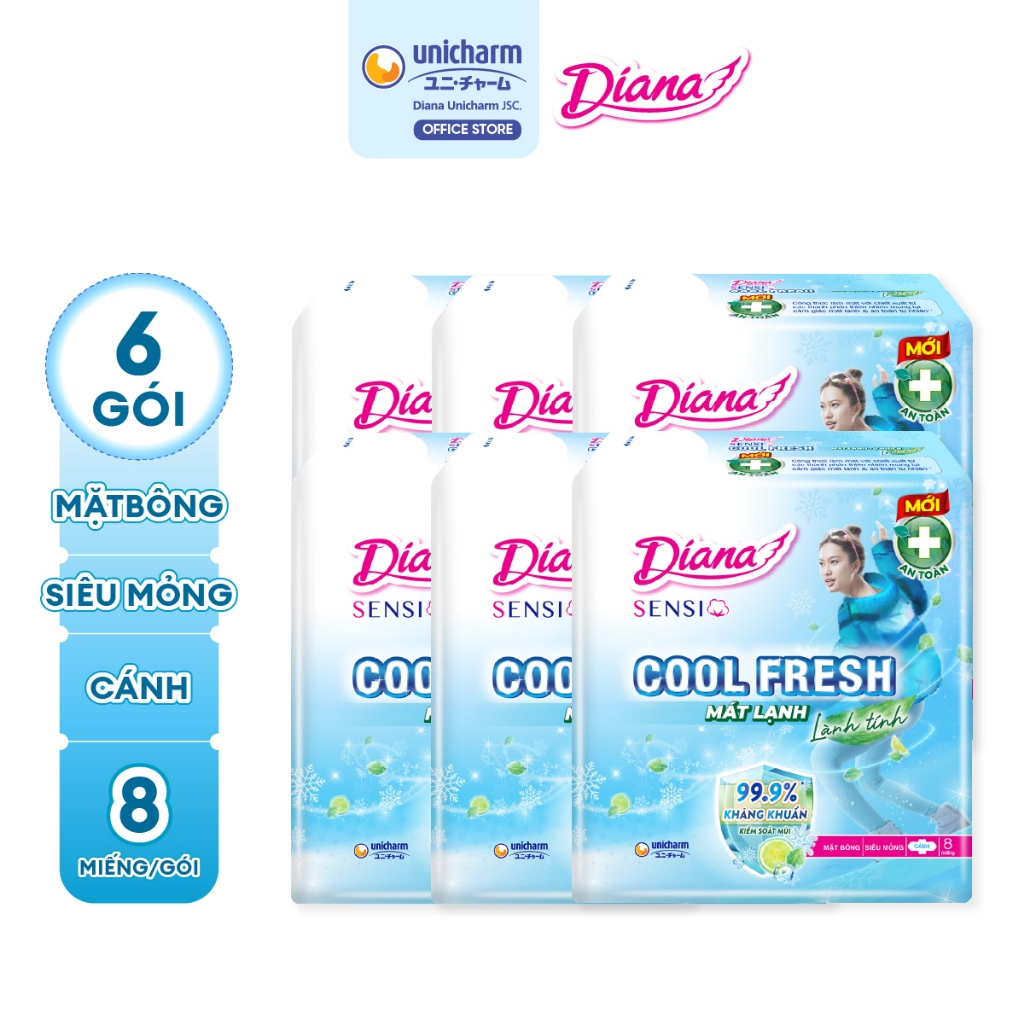 Bộ 6 gói băng vệ sinh Diana SenSi Cool Fresh siêu mỏng cánh gói 8 miếng
