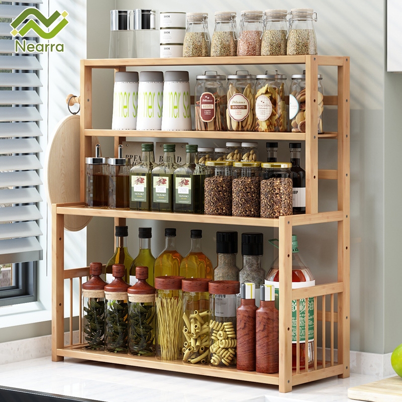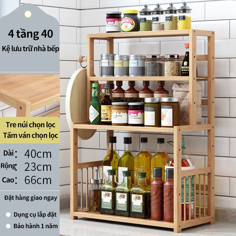 Kệ nhiều tầng, Lưu trữ dầu, muối, nước sốt và gia vị giấm, Kệ gia vị nhà bếp gỗ cao su tự nhiên bền