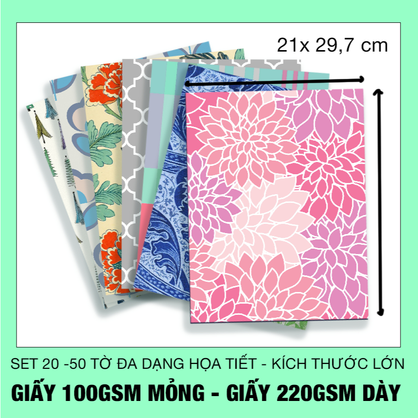 Set 50 giấy trang trí decor họa tiết nhiều mẫu làm nền chụp ảnh, thủ công, gấp giấy, trang trí sổ, thiệp