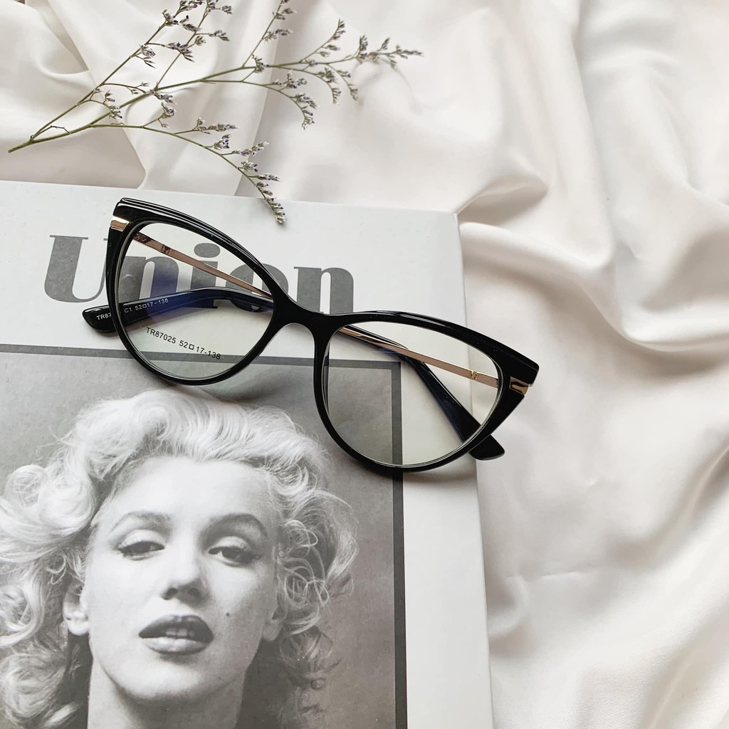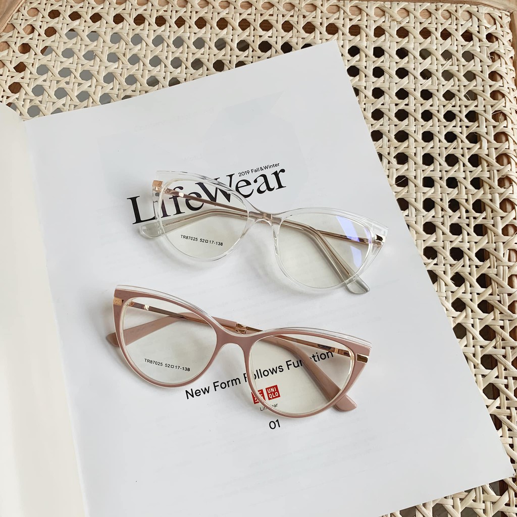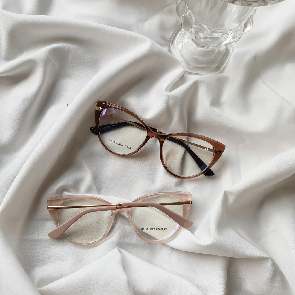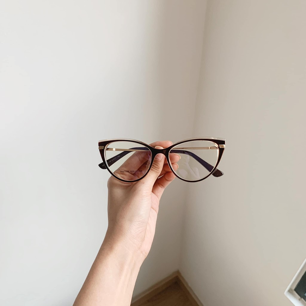 Gọng mắt mèo bầu mảnh chân kim loại - viền nổi pha 2 màu 87025