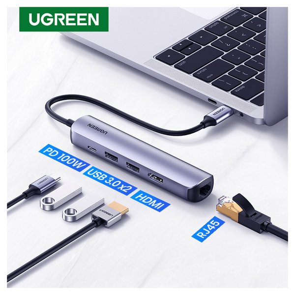 Hub USB-C Sang HDMI + USB 3.0*2 + RJ45 + PD Ultra Slim Ugreen 10919