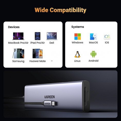 Hub 9 in 1 USB Type-C sang HDMI 4K@60Hz, Lan 1Gbps, Type-C, USB 3.0, SD/TF Sạc PD 100W Ugreen 15375