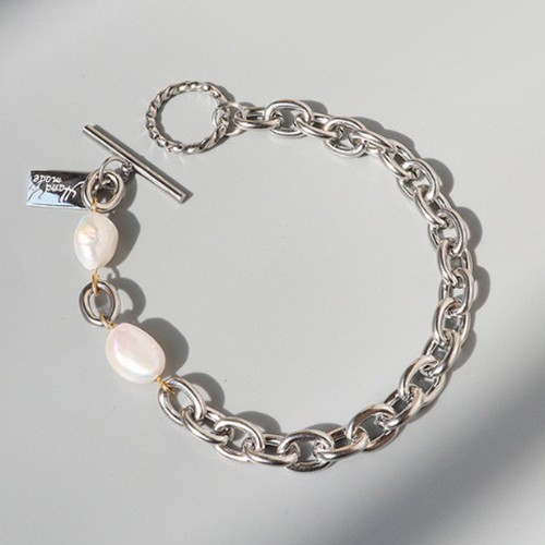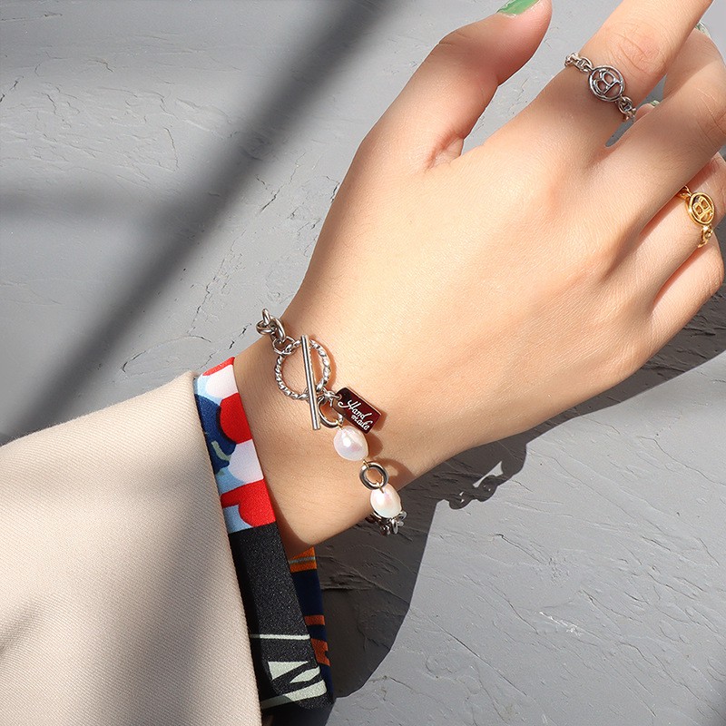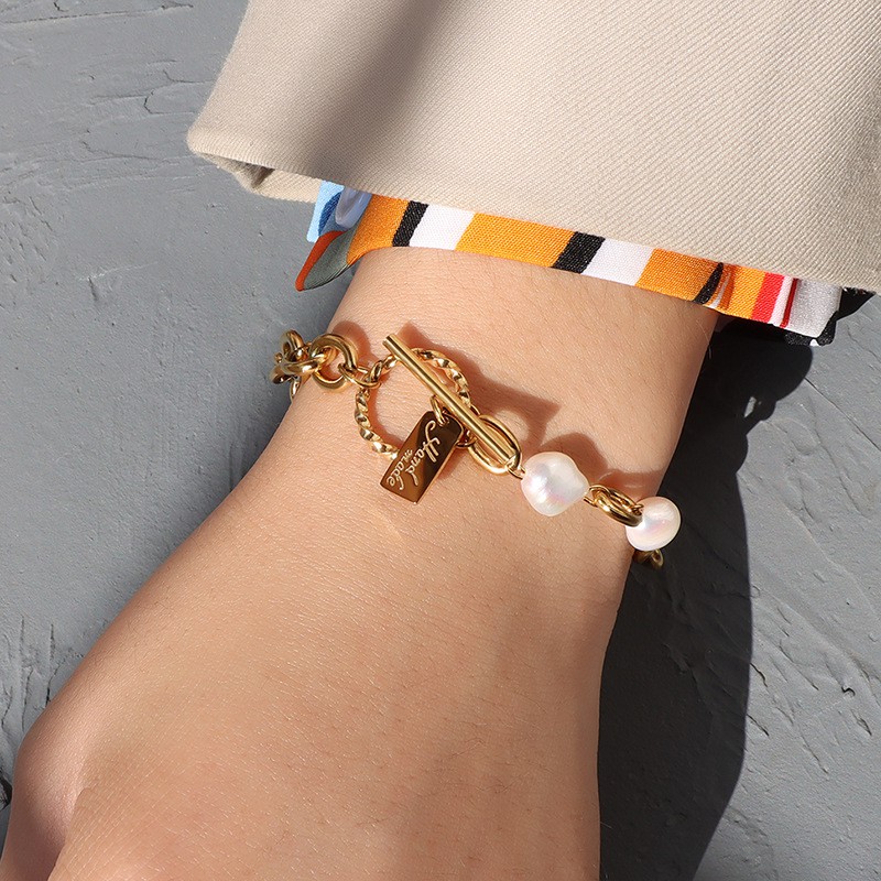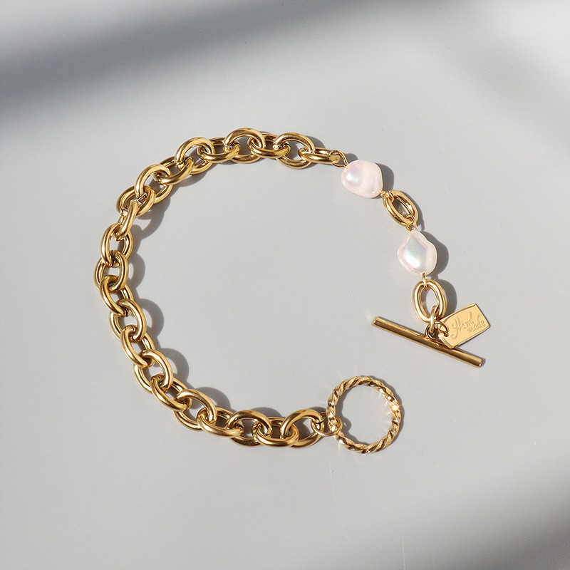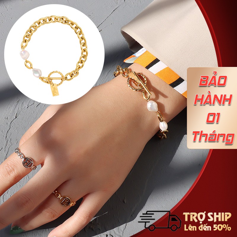 Vòng tay, lắc tay nữ bằng Thép Titan mạ vàng 18K không phai màu mắt xích phối Ngọc Trai cá tính - Thời Trang Âu Mỹ.