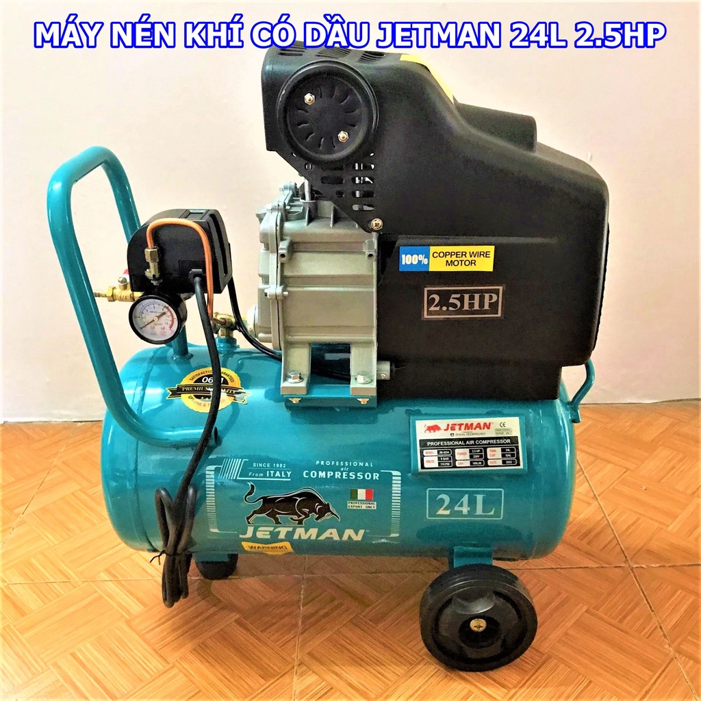 Máy Nén Khí Liền Trục Jetman JM-4224 24L - Động Cơ 100% Lõi Đồng, Vỏ Dày, Trang Bị Đồng Hồ Điện Tử