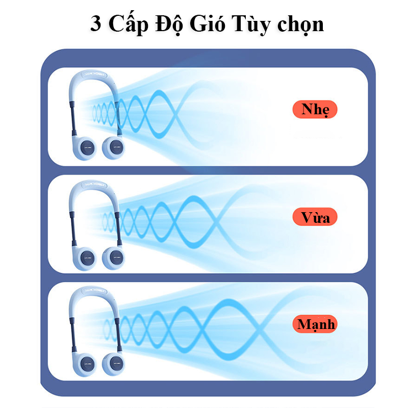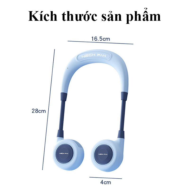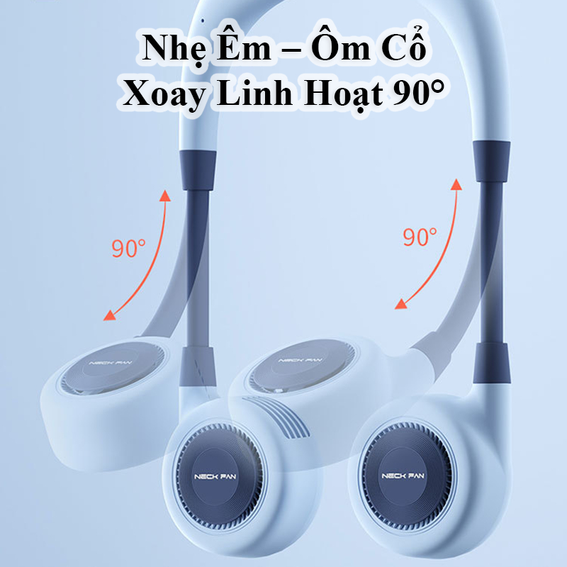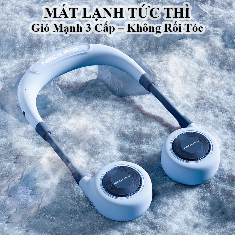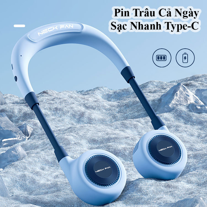 Quạt Đeo Cổ Mini Không Cánh 360° 3 Cấp Gió Mạnh Pin Trâu Sạc Nhanh Type-C Mát Sâu Không Rối Tóc