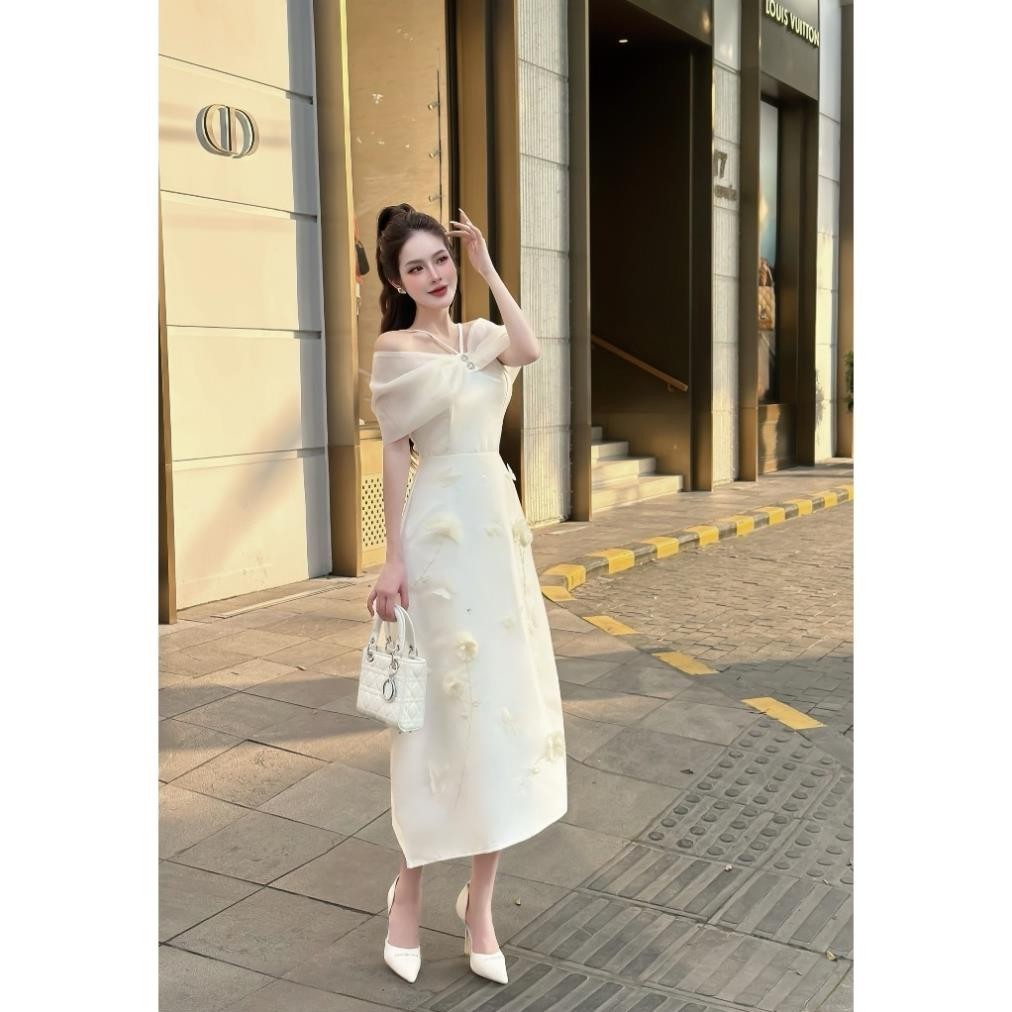váy trễ vai đính hoa cao cấp, đầm tafta đính hoa thêu nổi cho các nàng xinh đẹp phù hợp với tất cả các dịp trong năm