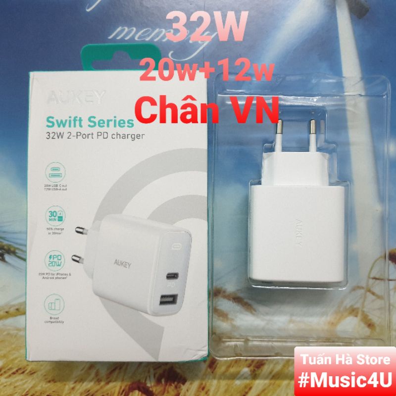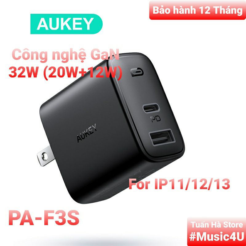 Củ sạc siêu nhanh Aukey PD PA-F3S 32W USB Type C cho IP 12 13 Pro Max S21 S20 Note 20 Tuấn Hà Store