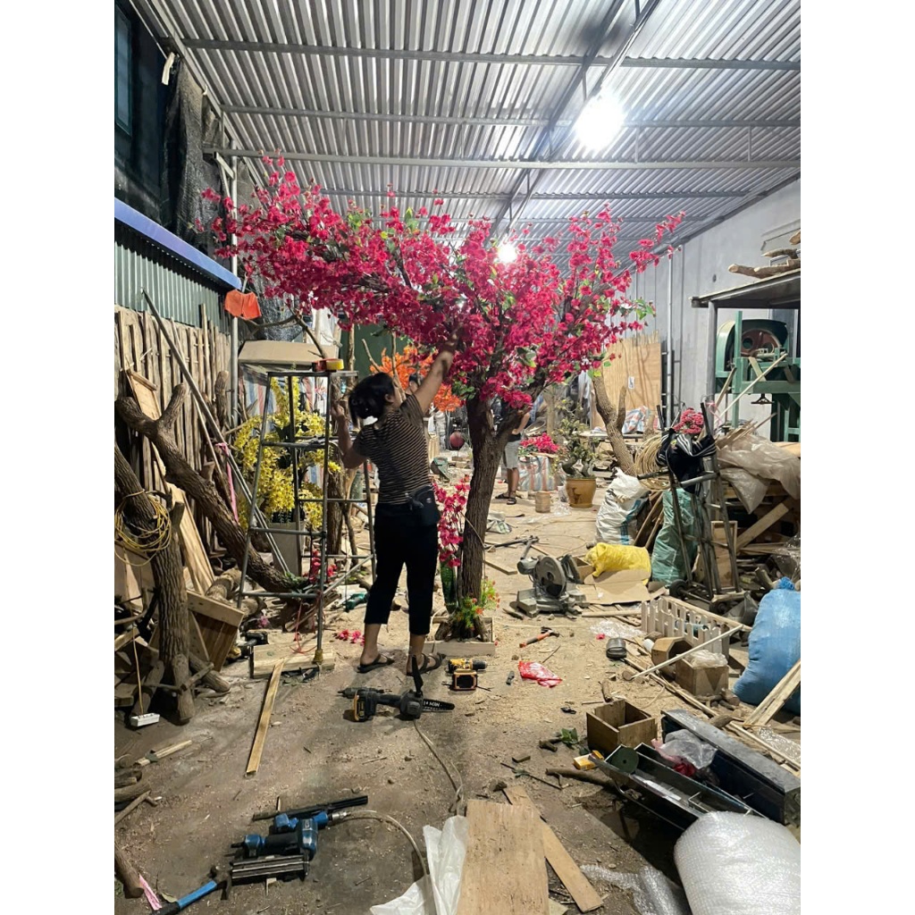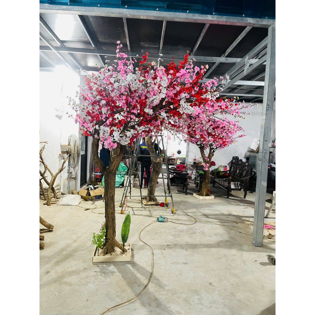 Cây hoa Mai Đào giả cao từ 1m5 - 2,3m -Tán rộng - loại hoa dày-trang trí Tết- sự kiện- nhà hàng- cửa hiệu