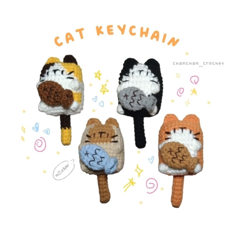 Móc khoá mèo hộp ôm cá bằng len - Handmade by Chanchan crochet