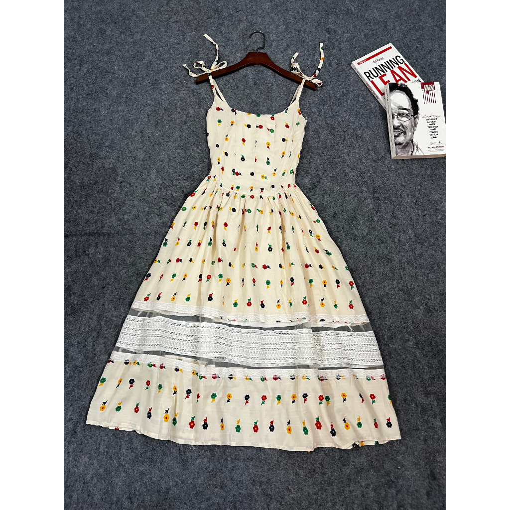 Đầm maxi 2 dây đi biển phối ren (ảnh và video thật)