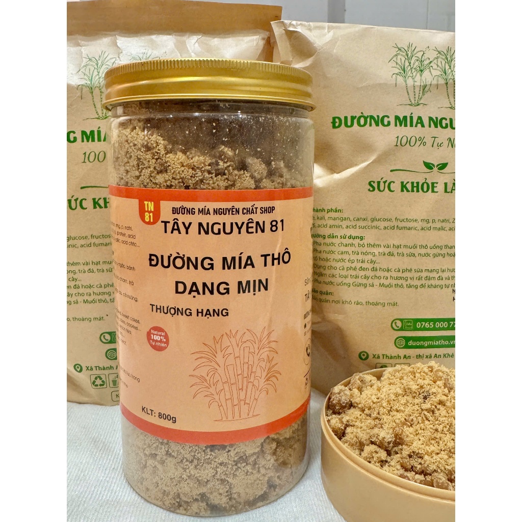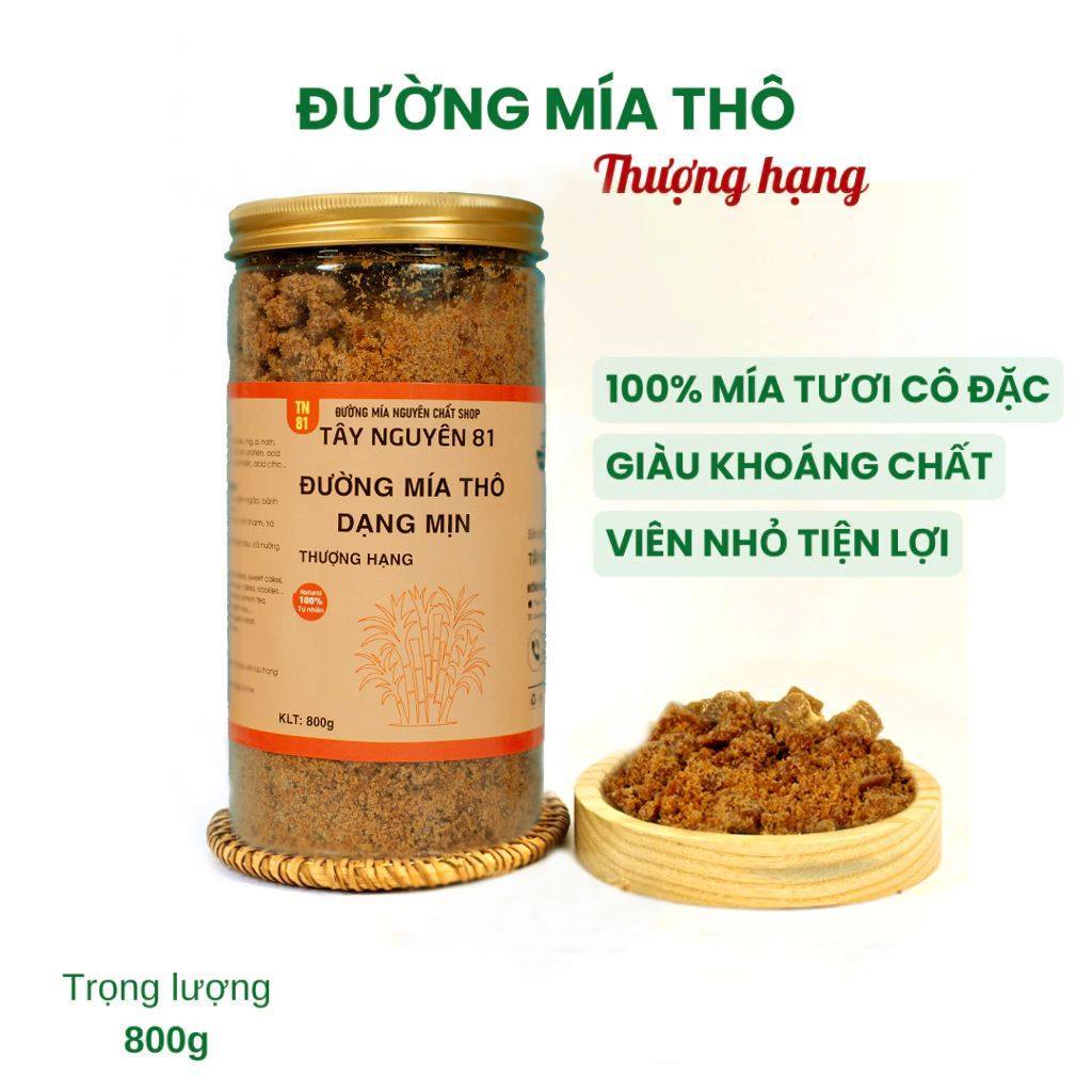 Đường Mía Thô Nguyên Chất Mật Mía Từ Mía Tươi Hũ 1kg Tặng Muối Thô