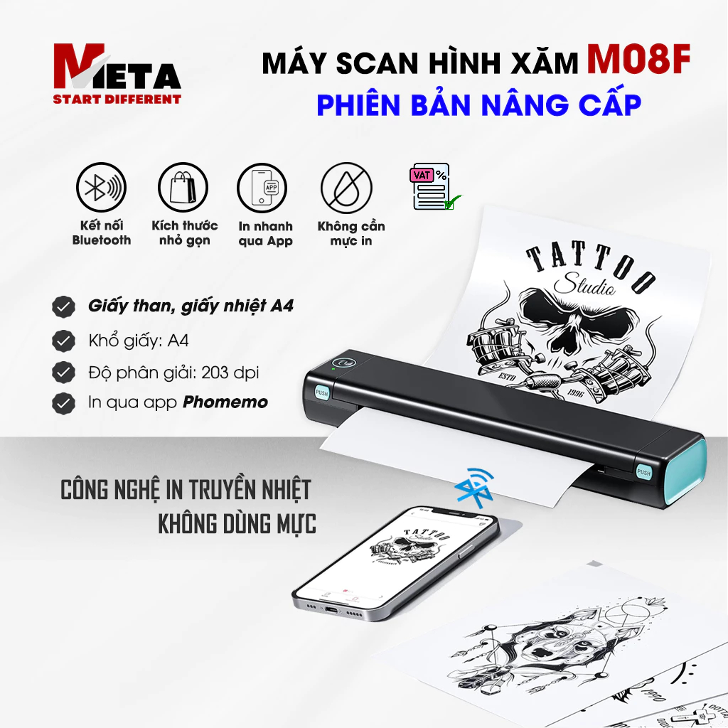 Máy Scan, In Hình Xăm M08F [𝐏𝐇𝐈𝐄̂𝐍 𝐁𝐀̉𝐍 𝐍𝐀̂𝐍𝐆 𝐂𝐀̂́𝐏] - In Nhanh Qua Bluetooth (Tặng giấy in tattoo)