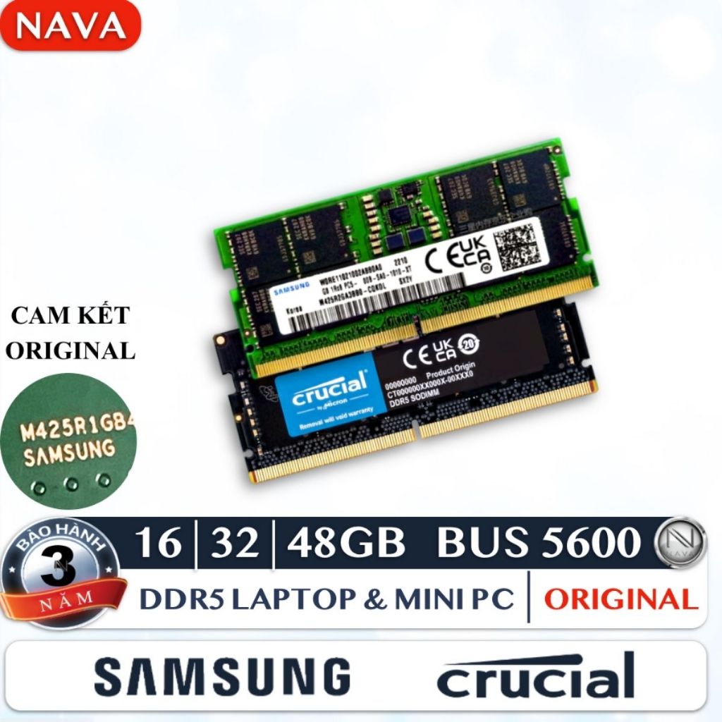 RAM Laptop 16GB DDR5 5600 MHz - Samsung, Crucial, SK Hynix, Micron - Ram Mini PC Nhập Khẩu BH 3 Năm