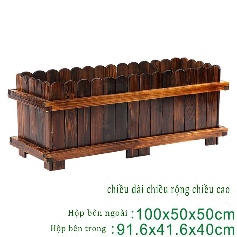 Giá treo hoa bằng gỗ chống ăn mòn ban công hộp trồng gỗ chắc chắn chậu hoa bằng gỗ trang trí sân vườn ngoài trời vách ng