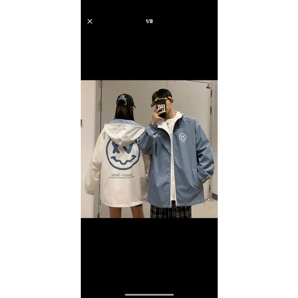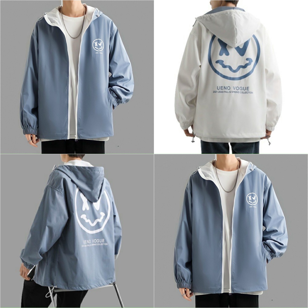 Áo khoác dù nam nữ UNISEX form rộng in mặt cười chất dù 2 lớp nón rộng UENO VOGUE